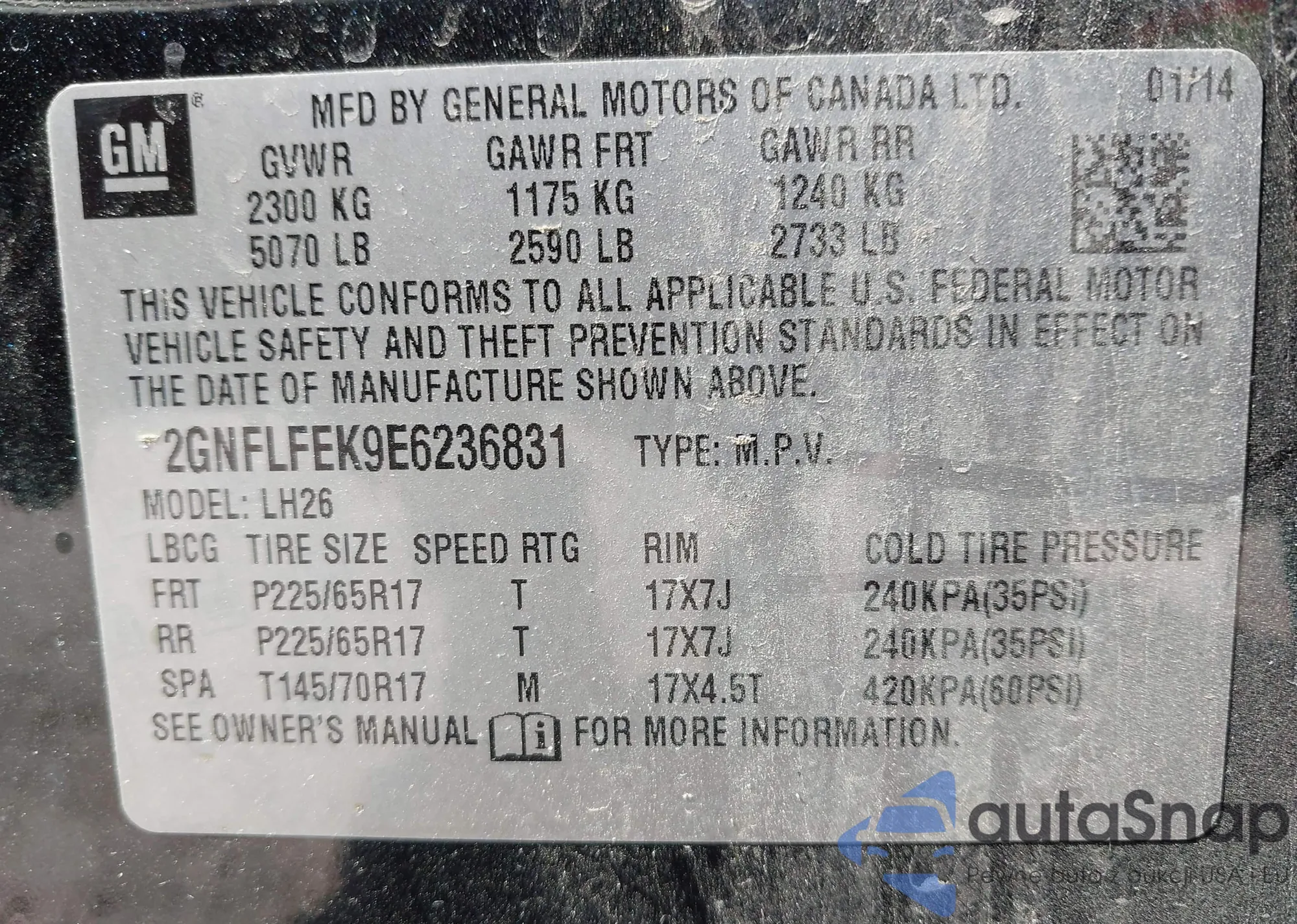 VIN: 2GNFLFEK9E6236831