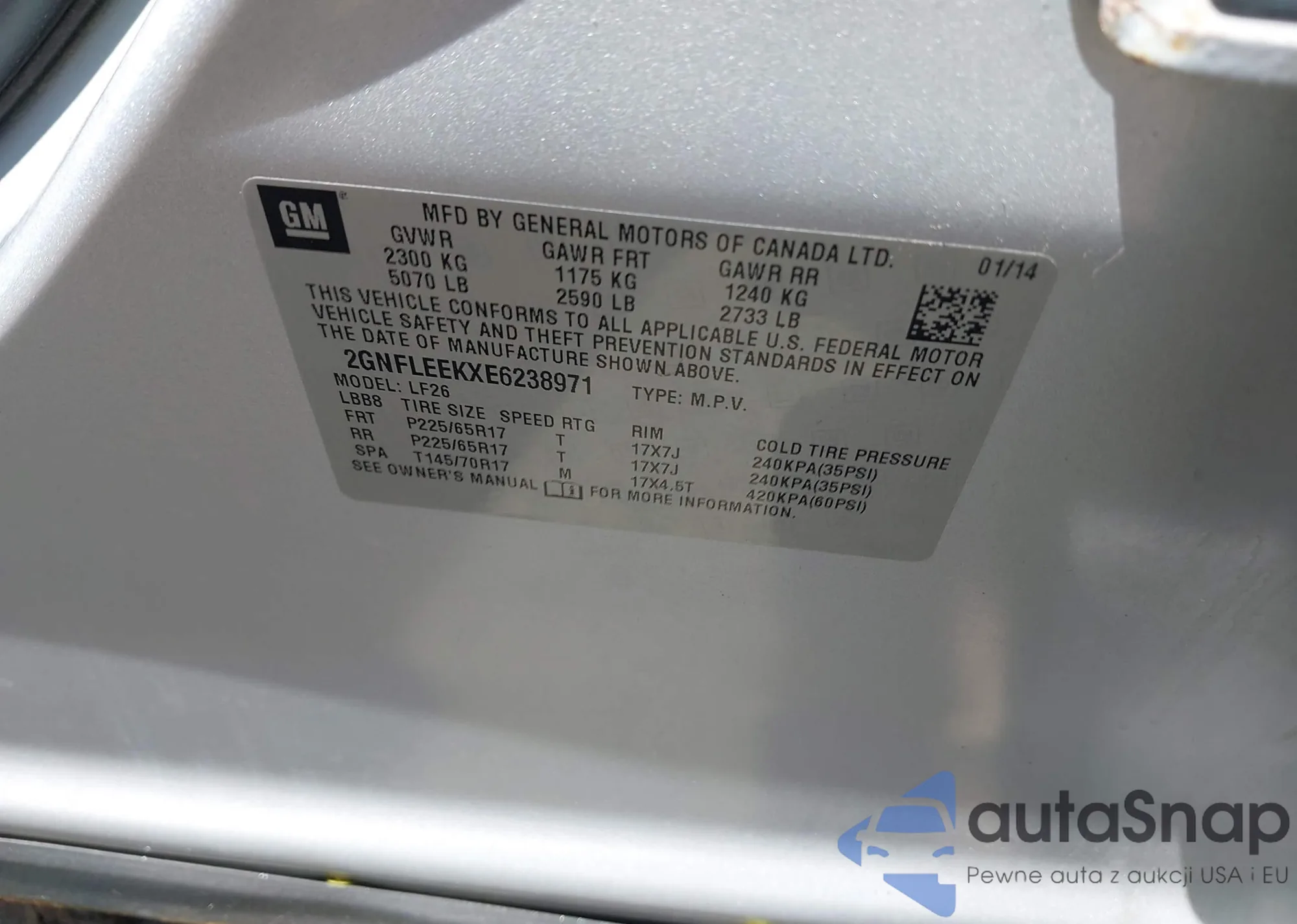 VIN: 2GNFLEEKXE6238971