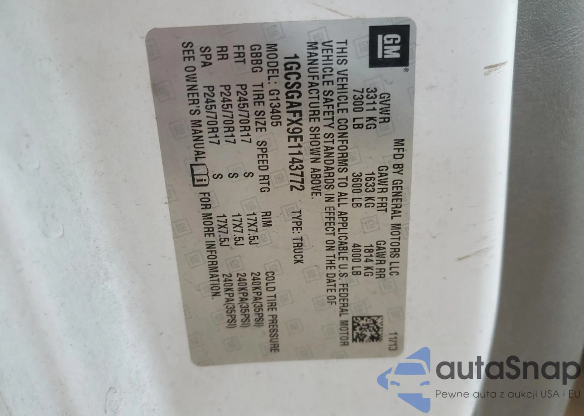 VIN: 1GCSGAFX9E1143772