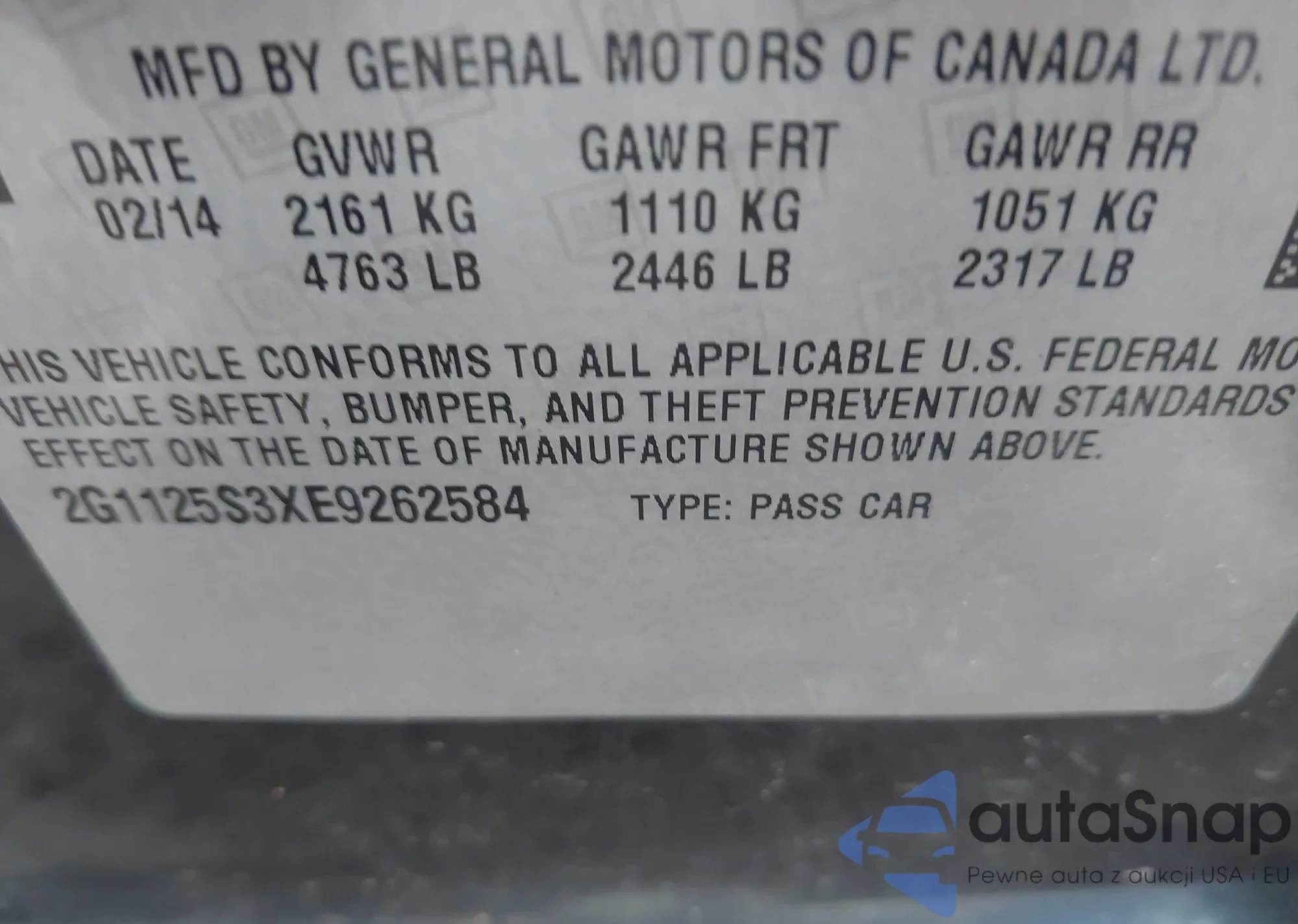 VIN: 2G1125S3XE9262584