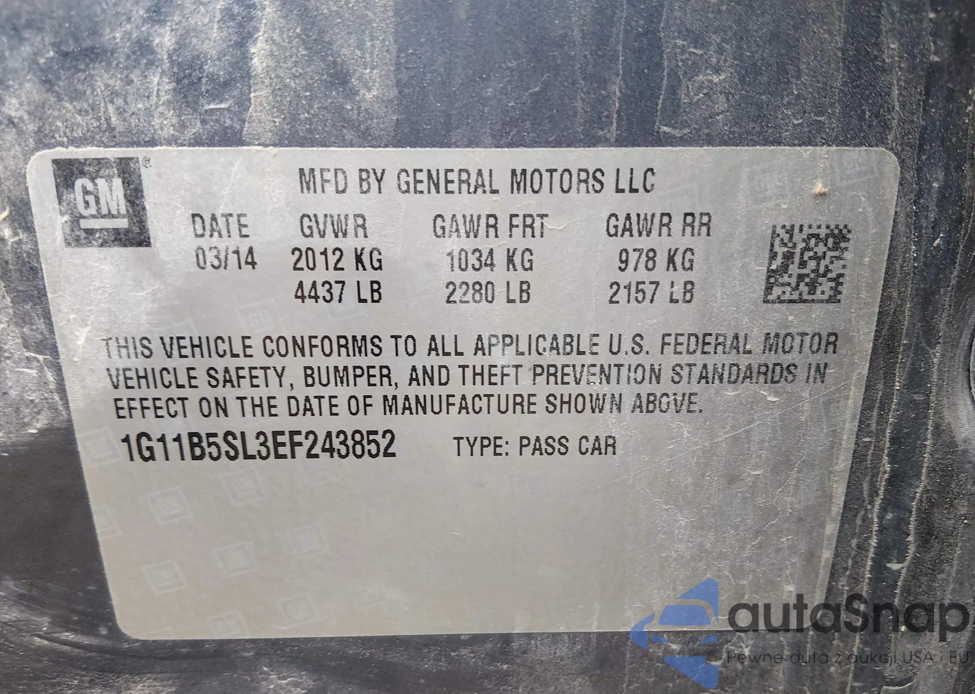 The car Chevrolet Malibu 2014 (VIN 1G11B5SL3EF243852) has not been auctioned before. The documents are clean, and the mileage matches or is below the market average. Sold by an insurance company – we recommend purchase. Delivery to the port will take approx. 6–8 weeks.