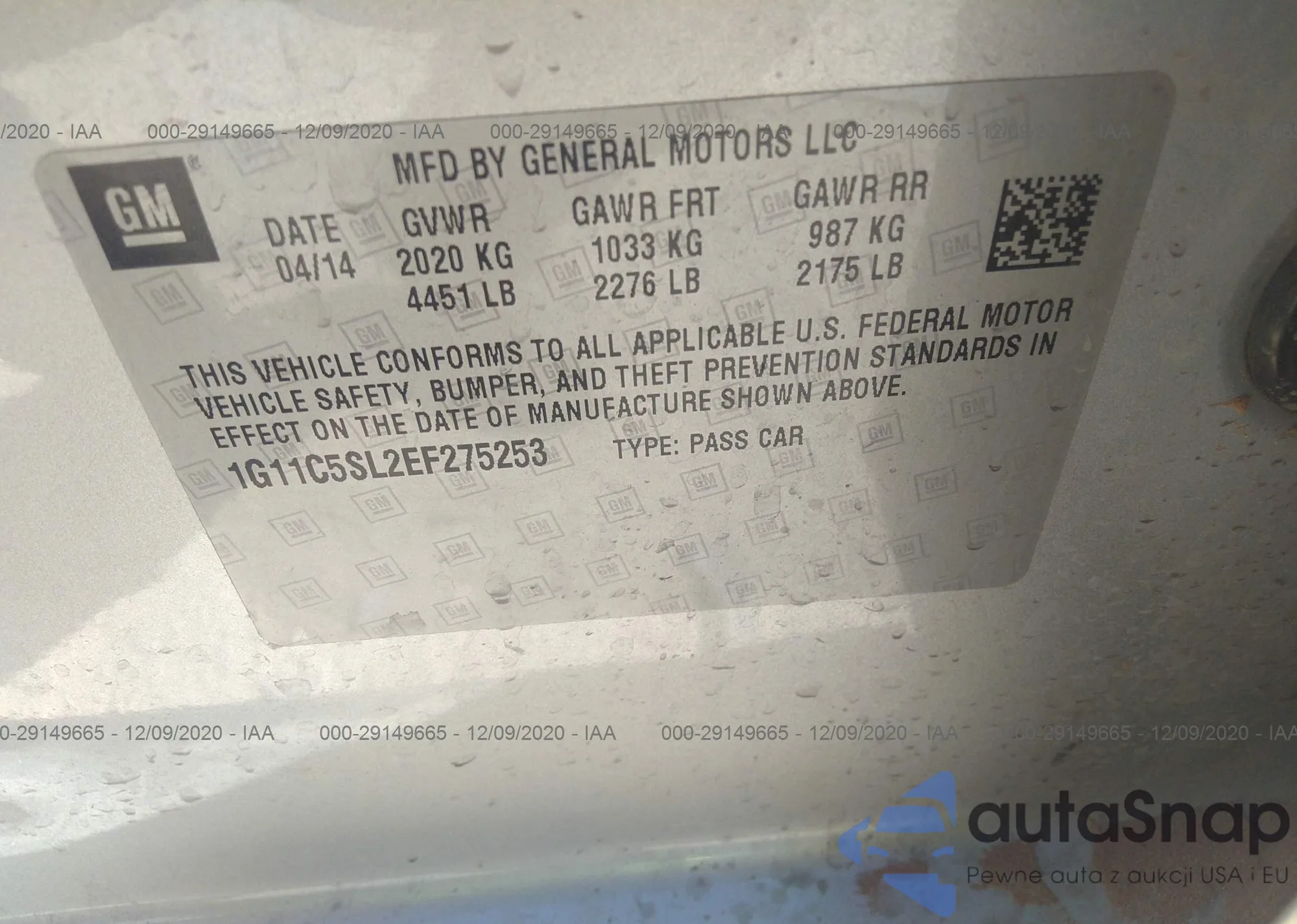 • VIN: 1G11C5SL2EF275253