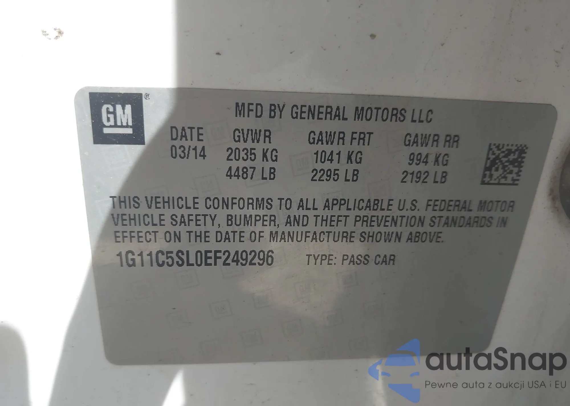 VIN: 1G11C5SL0EF249296