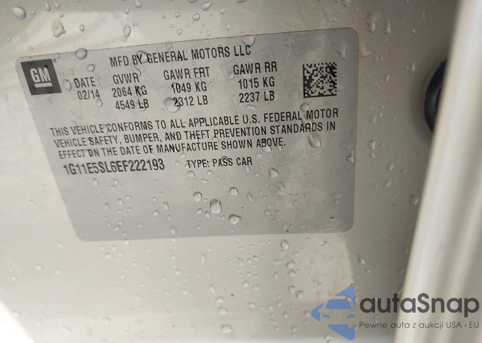 The car Chevrolet Malibu 2014 (VIN 1G11E5SL6EF222193) has not been auctioned before. The documents are clean, and the mileage matches or is below the market average. Sold by an insurance company – we recommend purchase. Delivery to the port will take approx. 6–8 weeks.