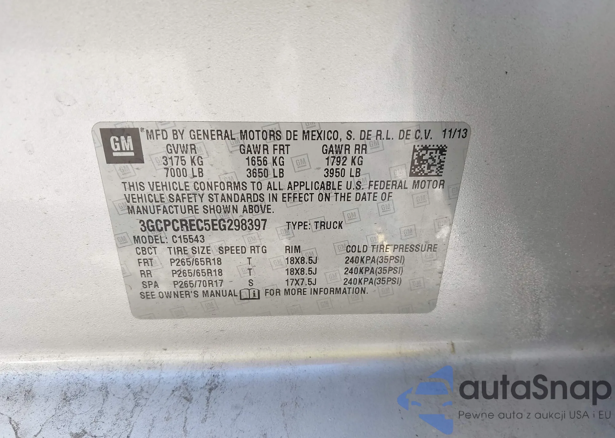 VIN: 3GCPCREC5EG298397