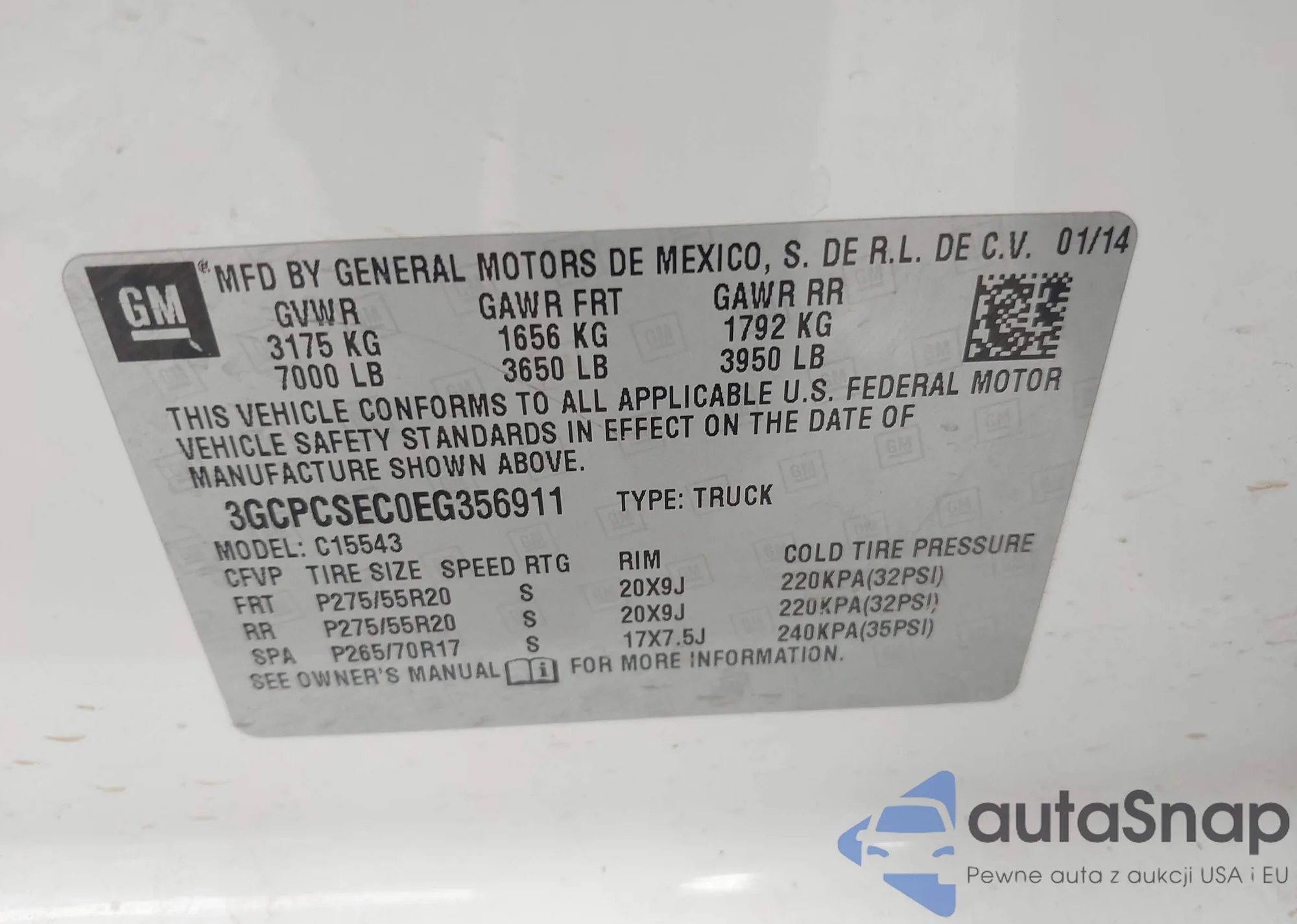 VIN: 3GCPCSEC0EG356911