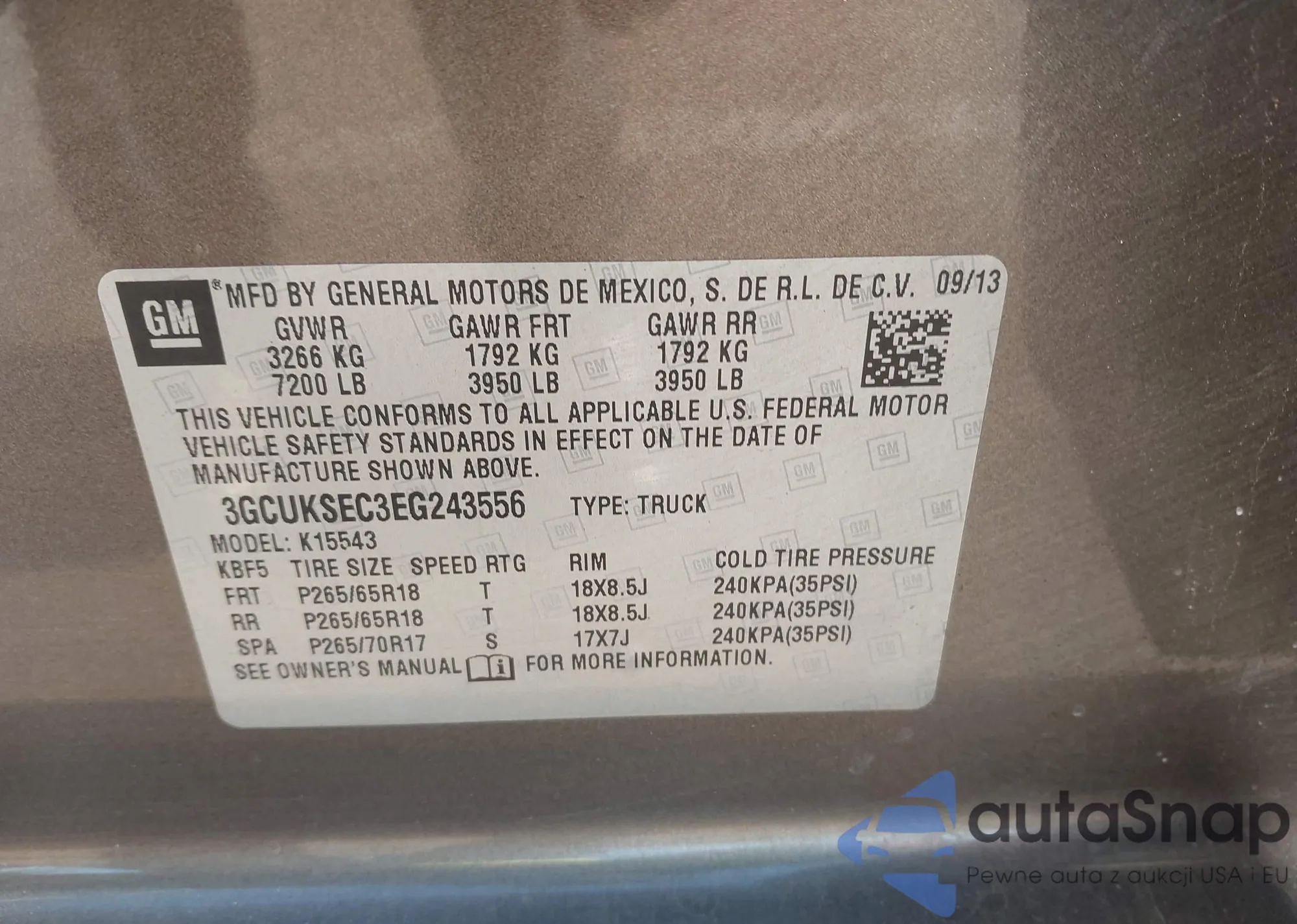 The car Chevrolet Silverado 2014 (VIN 3GCUKSEC3EG243556) has not been auctioned before. The documents are clean, and the mileage matches or is below the market average. Sold by an insurance company – we recommend purchase. Delivery to the port will take approx. 6–8 weeks.