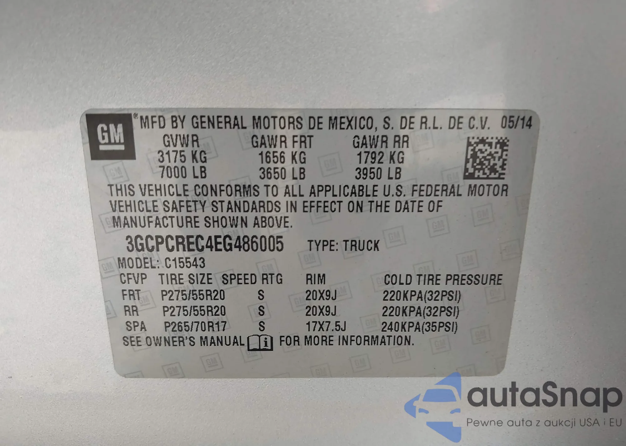 VIN: 3GCPCREC4EG486005