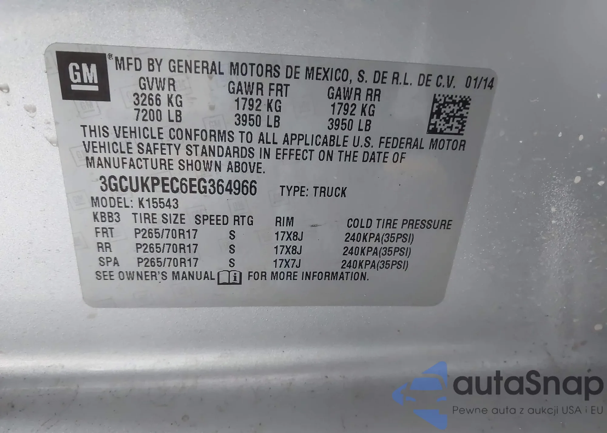 VIN: 3GCUKPEC6EG364966