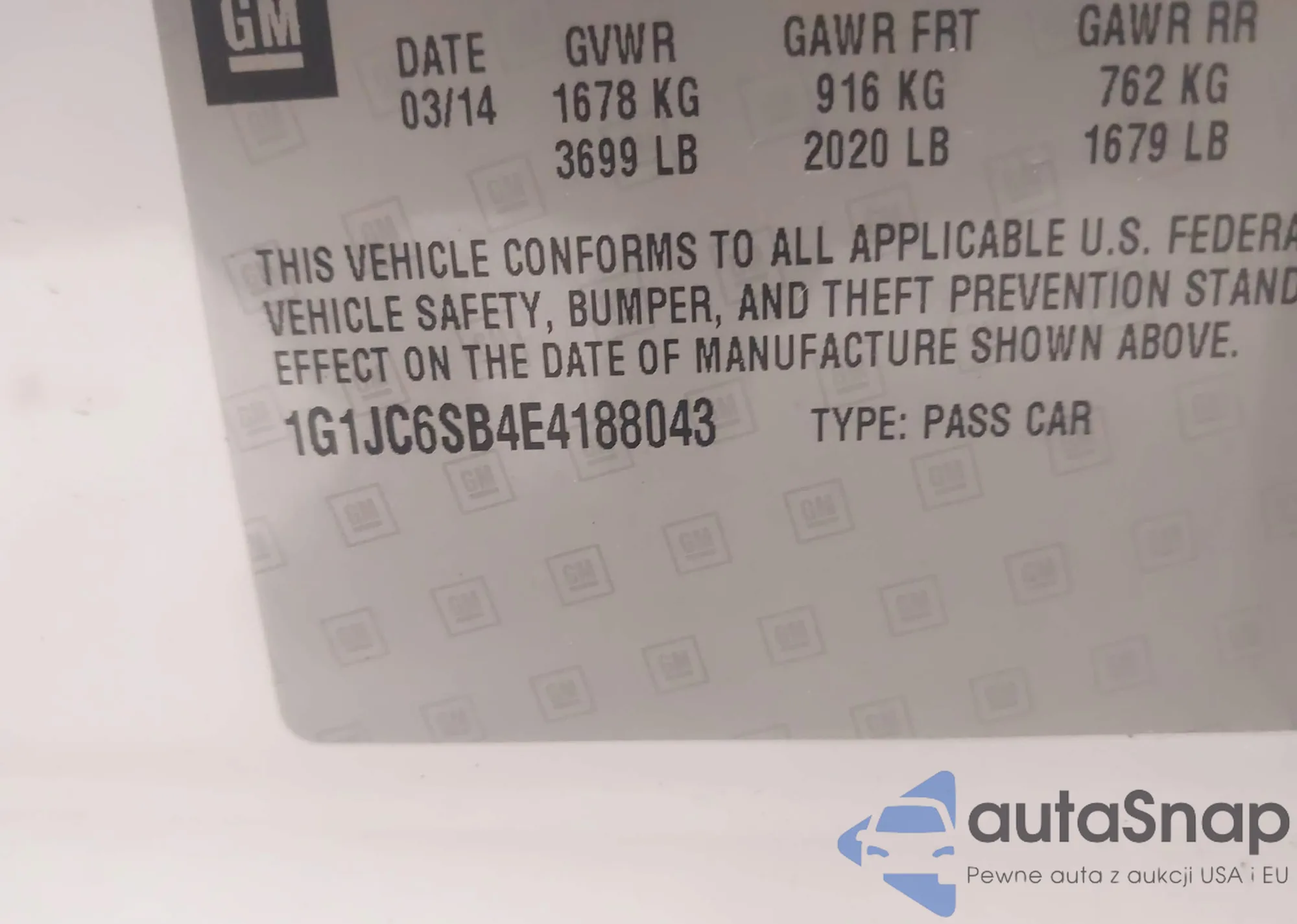 The car Chevrolet Sonic 2014 (VIN 1G1JC6SB4E4188043) is sold by an unverified seller. We recommend checking the Carfax report and confirming registration possibilities before purchase.