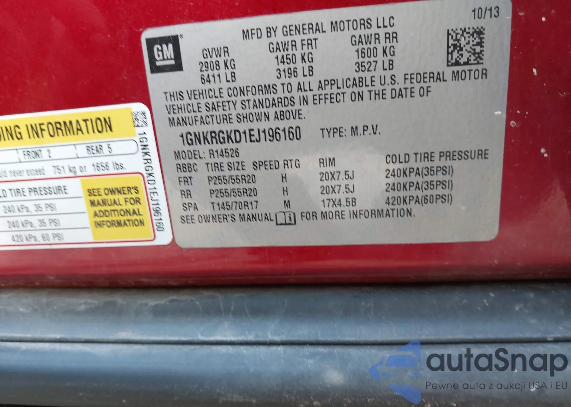 VIN: 1GNKRGKD1EJ196160