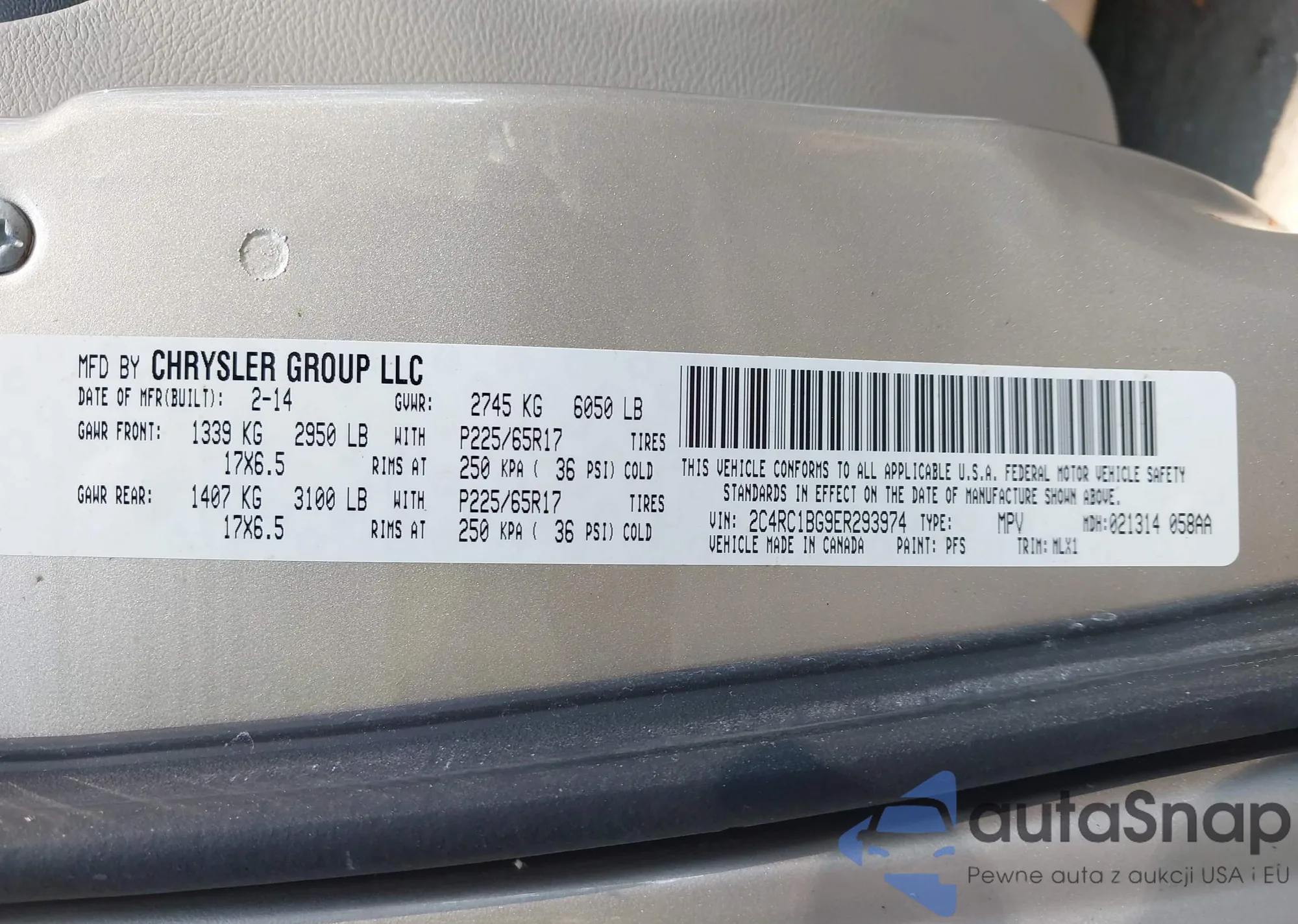 VIN: 2C4RC1BG9ER293974