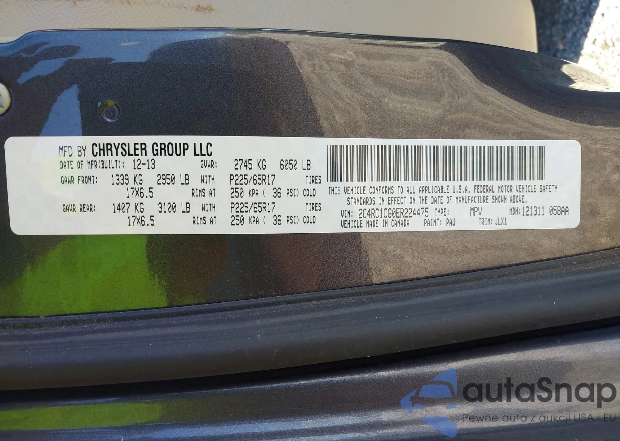 The car Chrysler Town & Country 2014 (VIN 2C4RC1CG0ER224475) is sold by an unverified seller. We recommend checking the Carfax report and confirming registration possibilities before purchase.