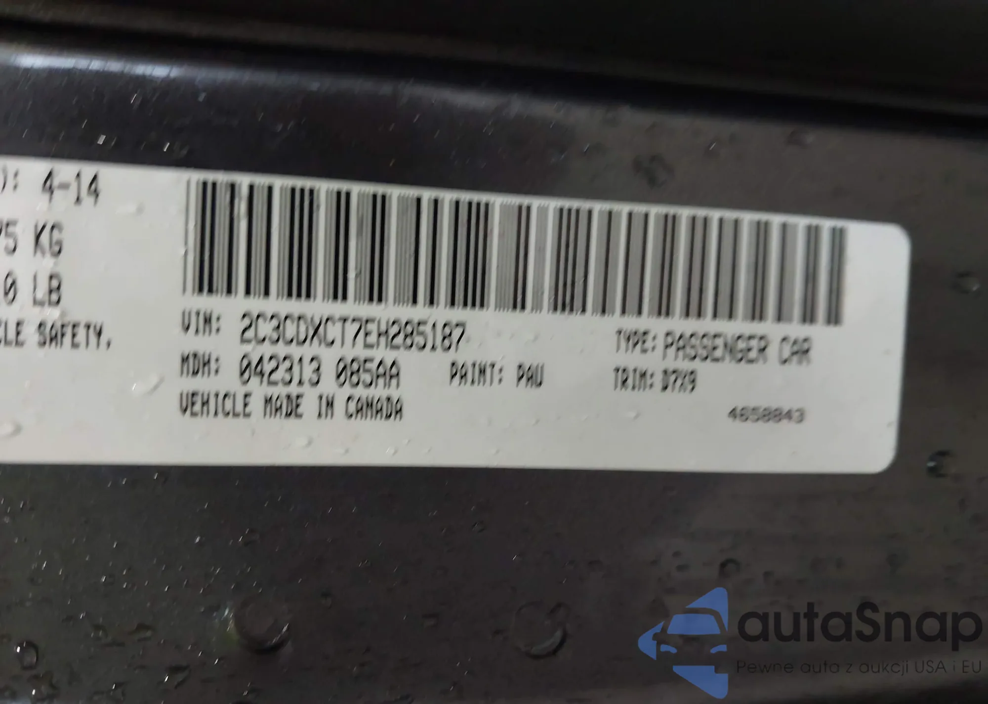 • VIN: 2C3CDXCT7EH285187