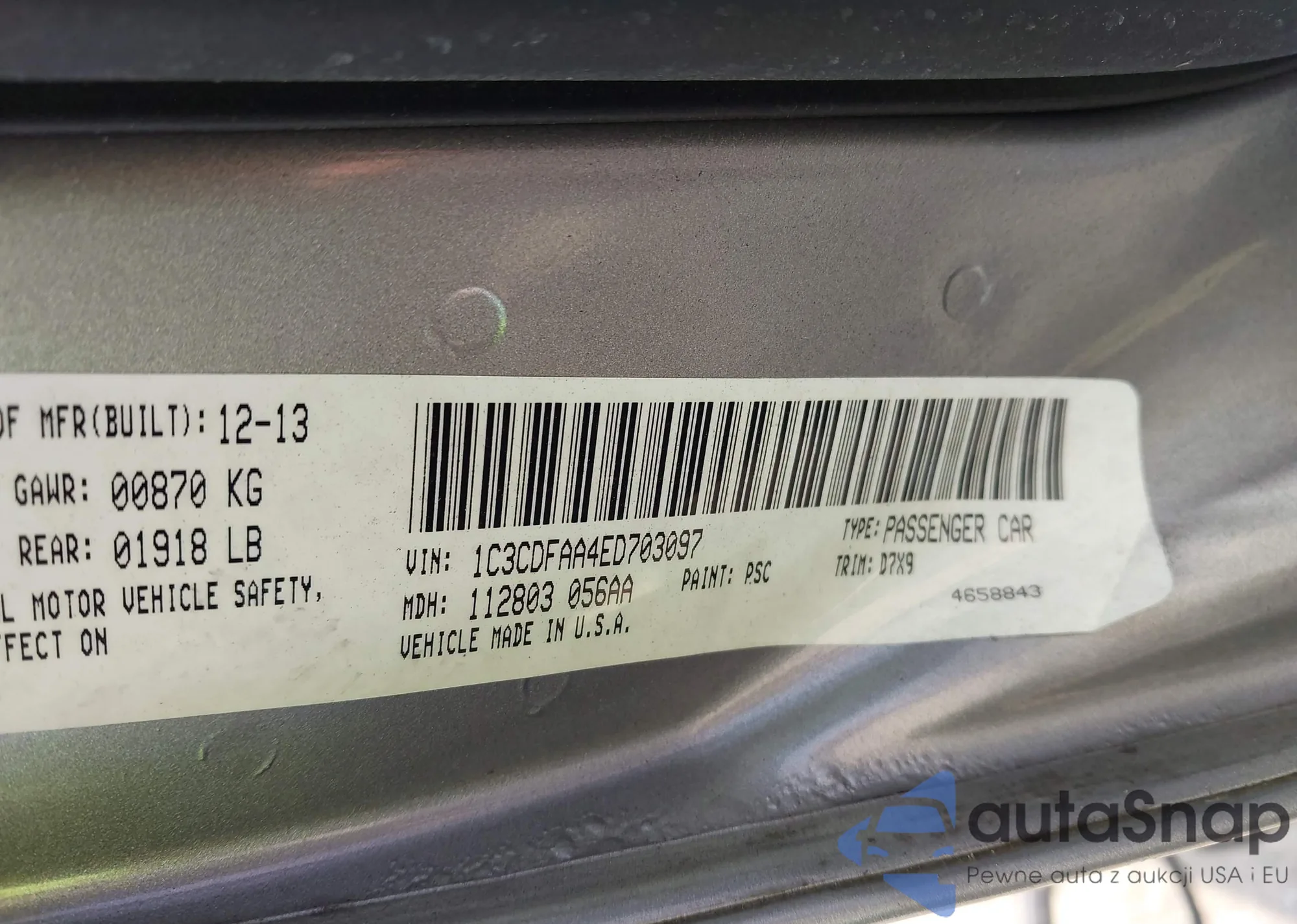 VIN: 1C3CDFAA4ED703097