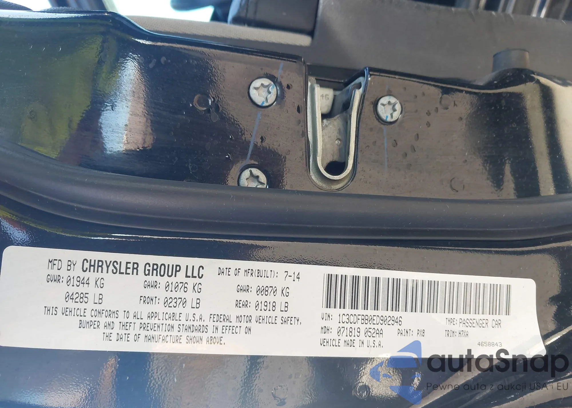 • VIN: 1C3CDFBB0ED902946