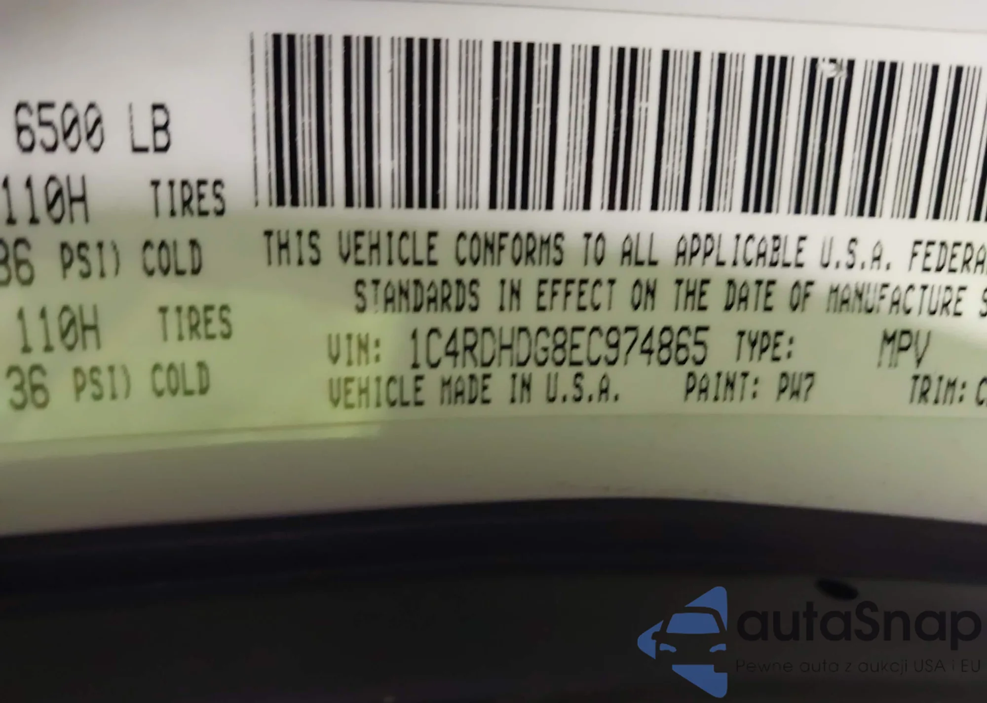• VIN: 1C4RDHDG8EC974865