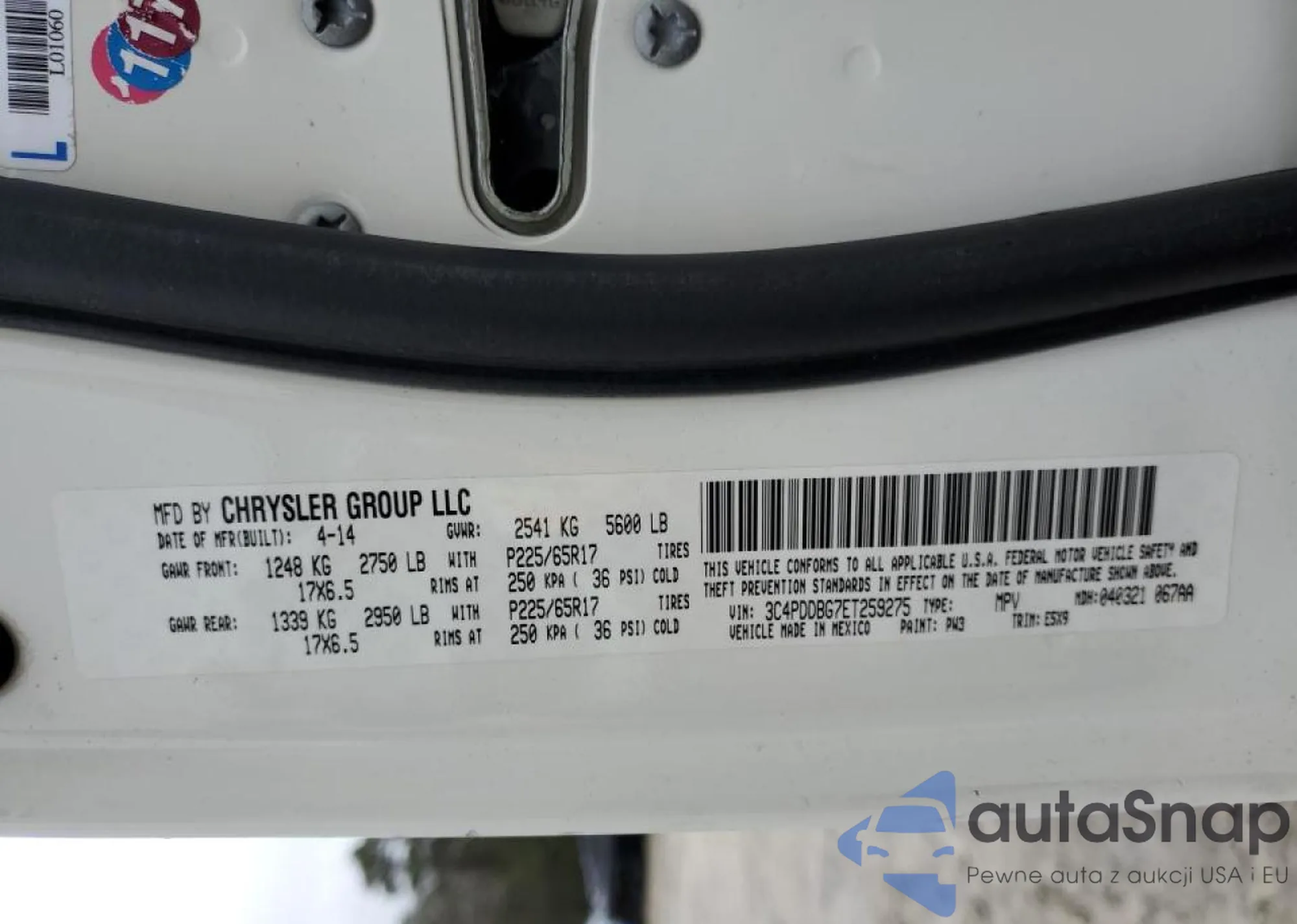 Dodge Journey 2014 – Vehicle History (Sold at COPART)