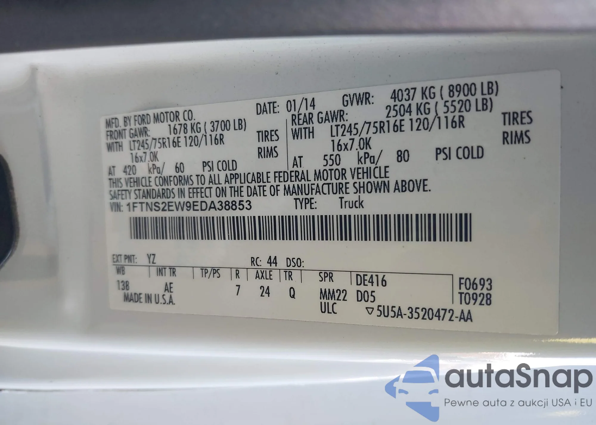 • VIN: 1FTNS2EW9EDA38853