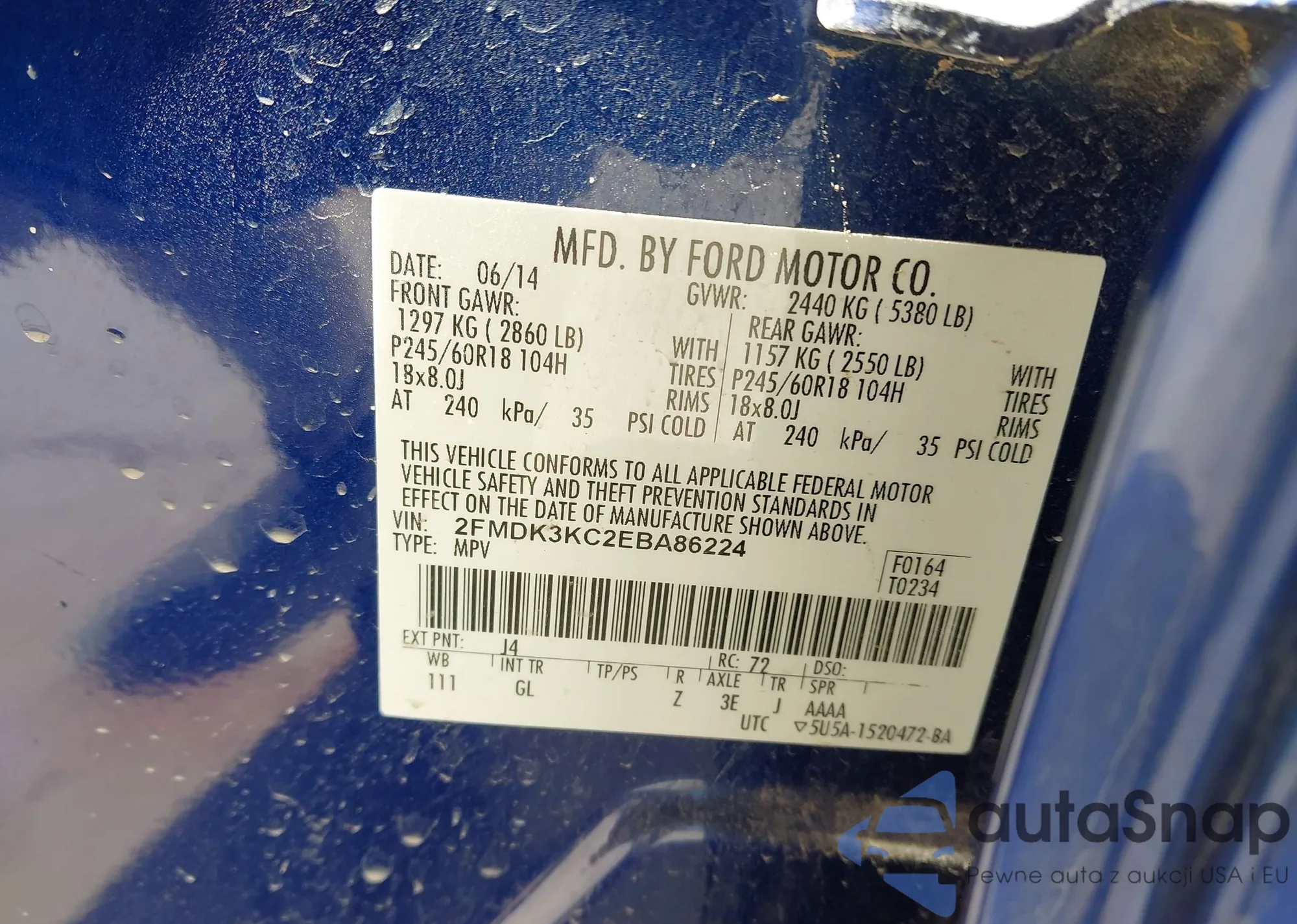 VIN: 2FMDK3KC2EBA86224