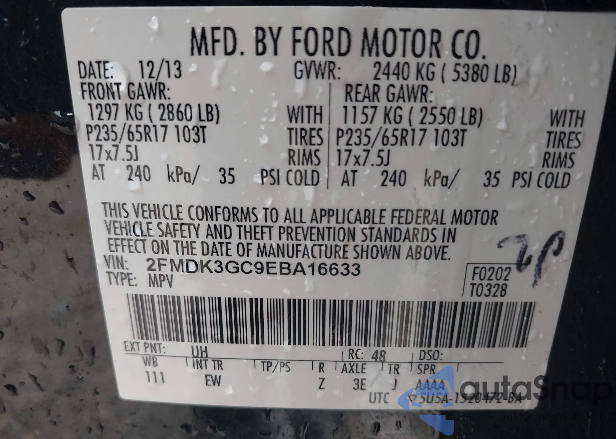 VIN: 2FMDK3GC9EBA16633