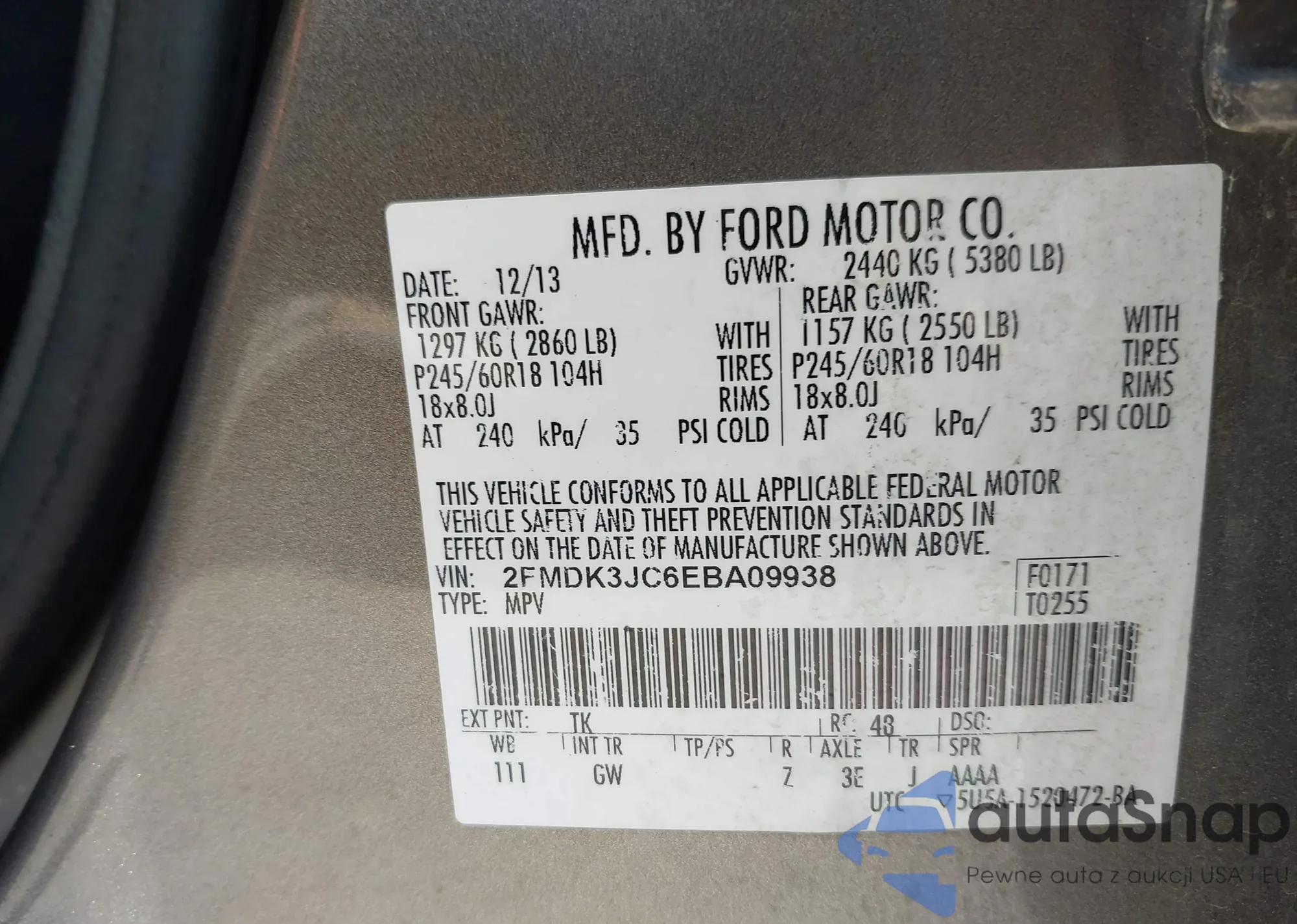VIN: 2FMDK3JC6EBA09938