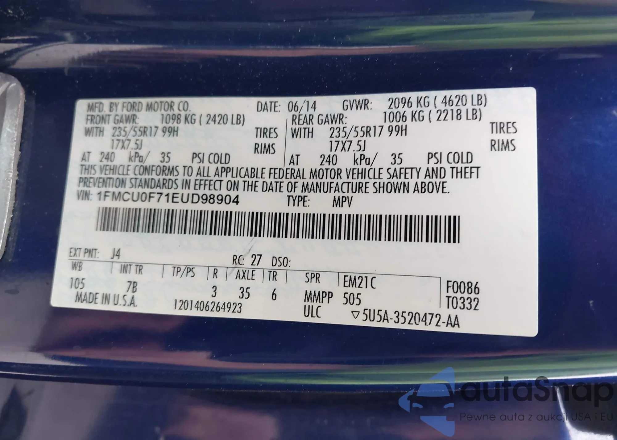 VIN: 1FMCU0F71EUD98904