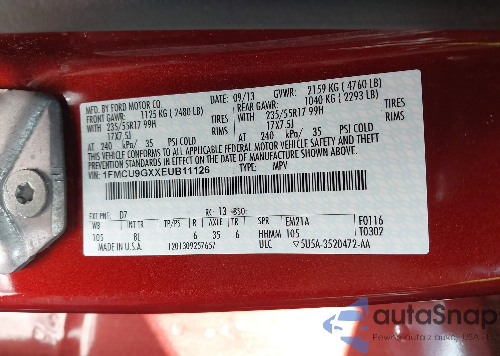 VIN: 1FMCU9GXXEUB11126