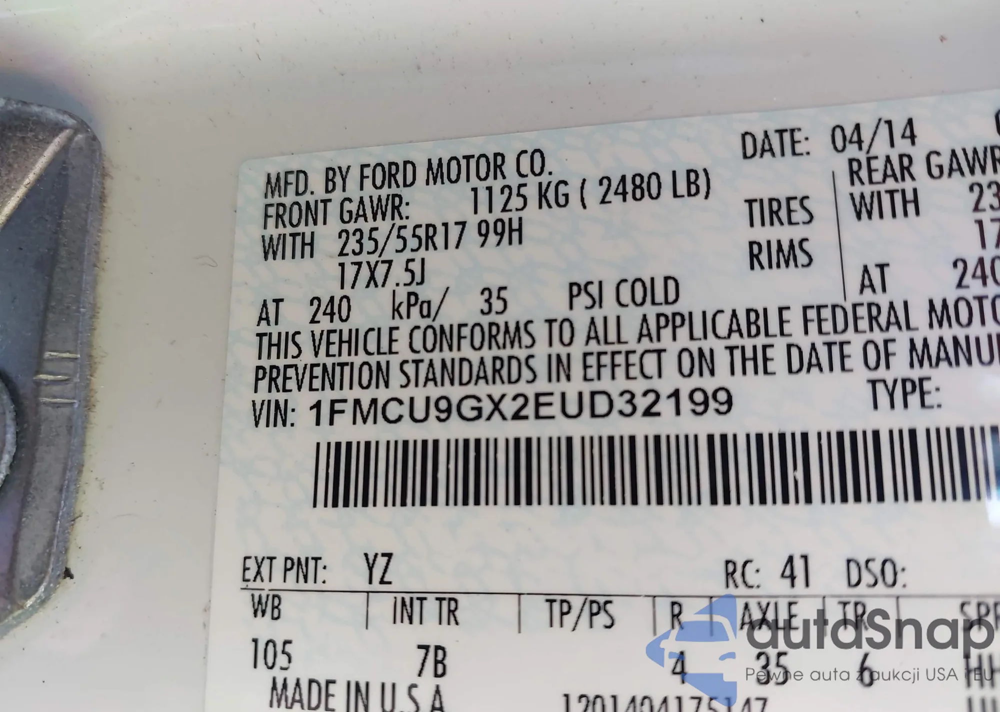 VIN: 1FMCU9GX2EUD32199