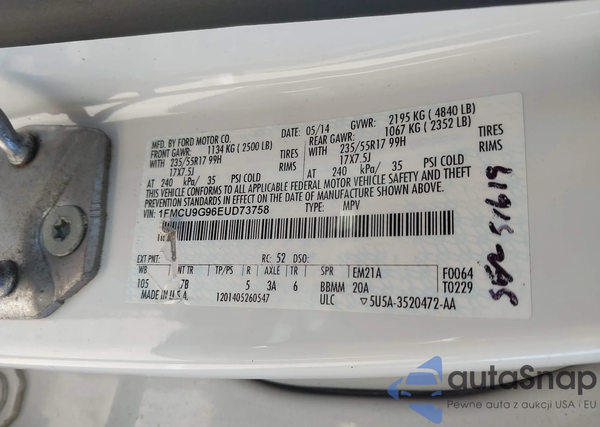 VIN: 1FMCU9G96EUD73758