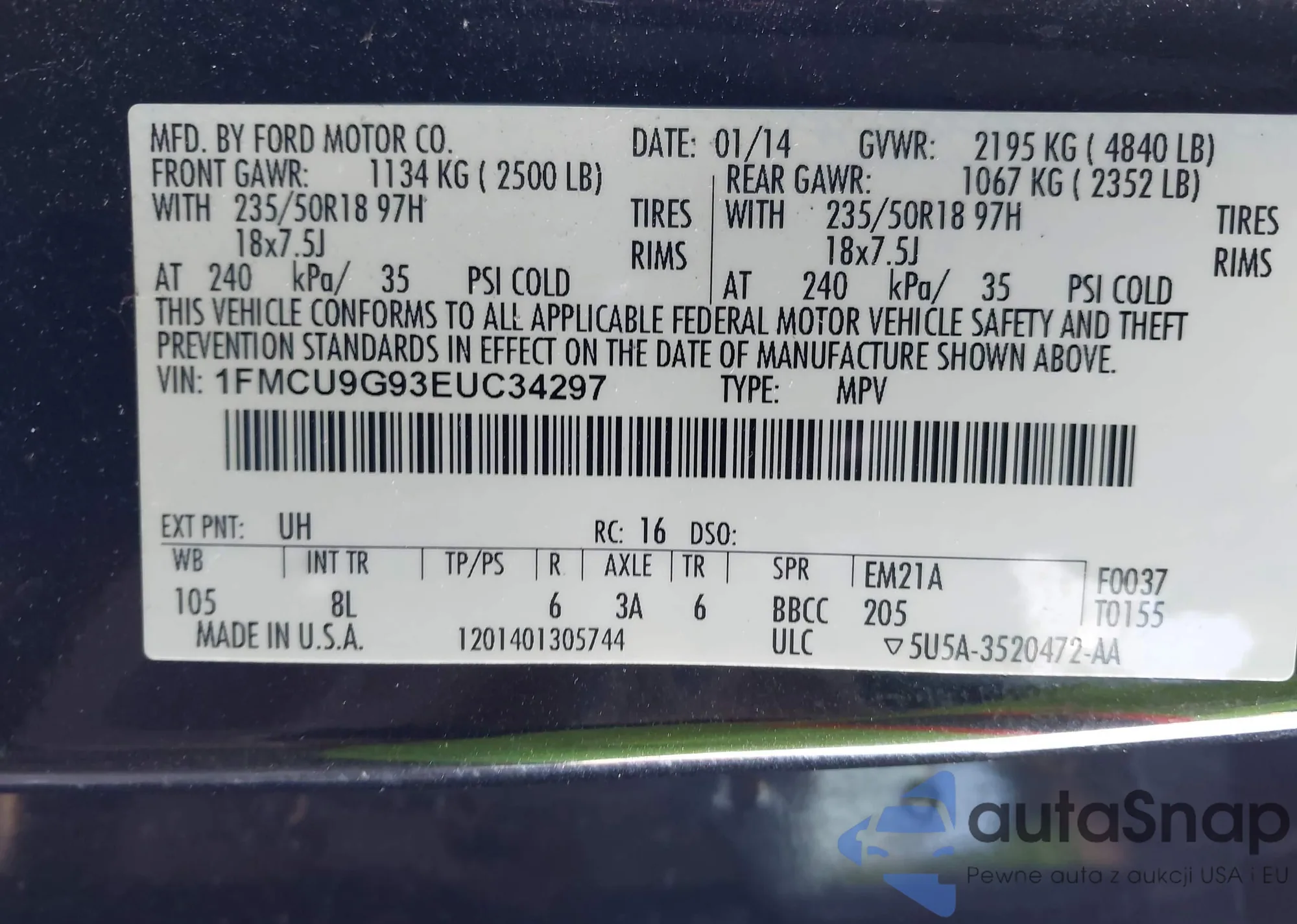 VIN: 1FMCU9G93EUC34297