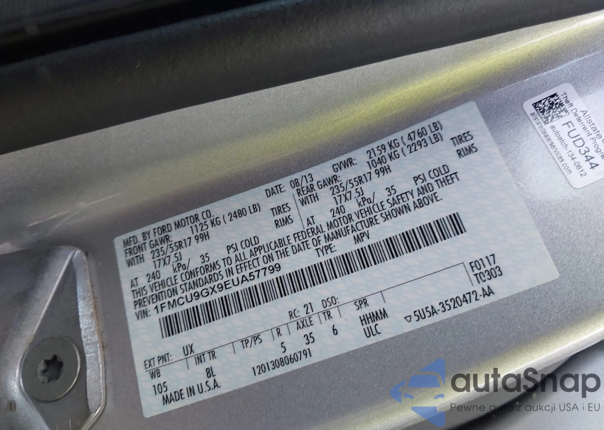 VIN: 1FMCU9GX9EUA57799