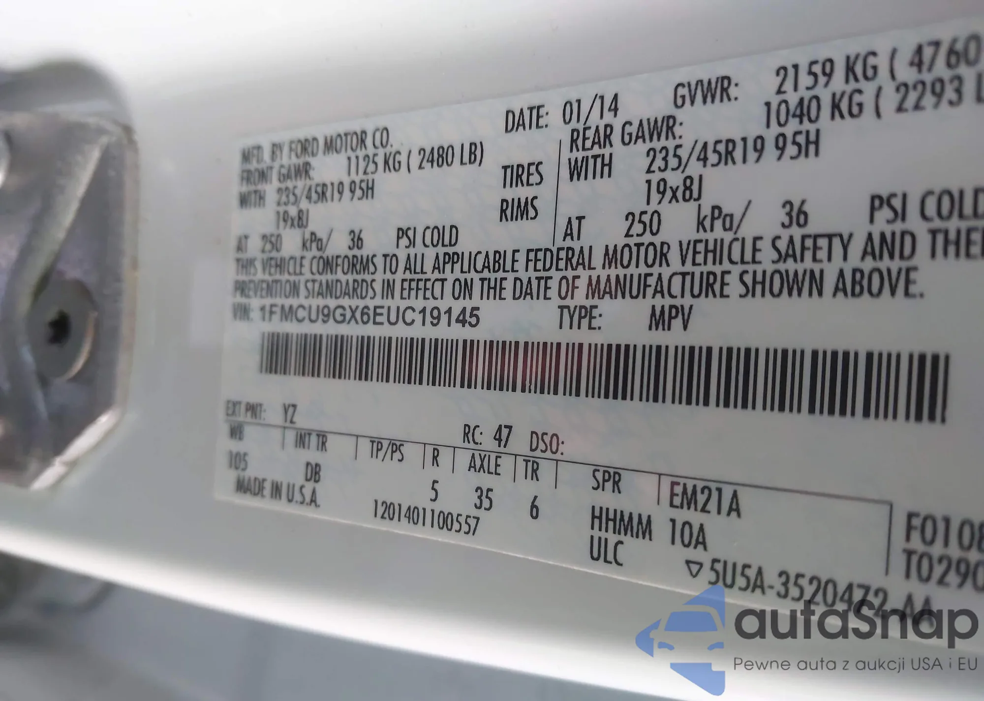 VIN: 1FMCU9GX6EUC19145
