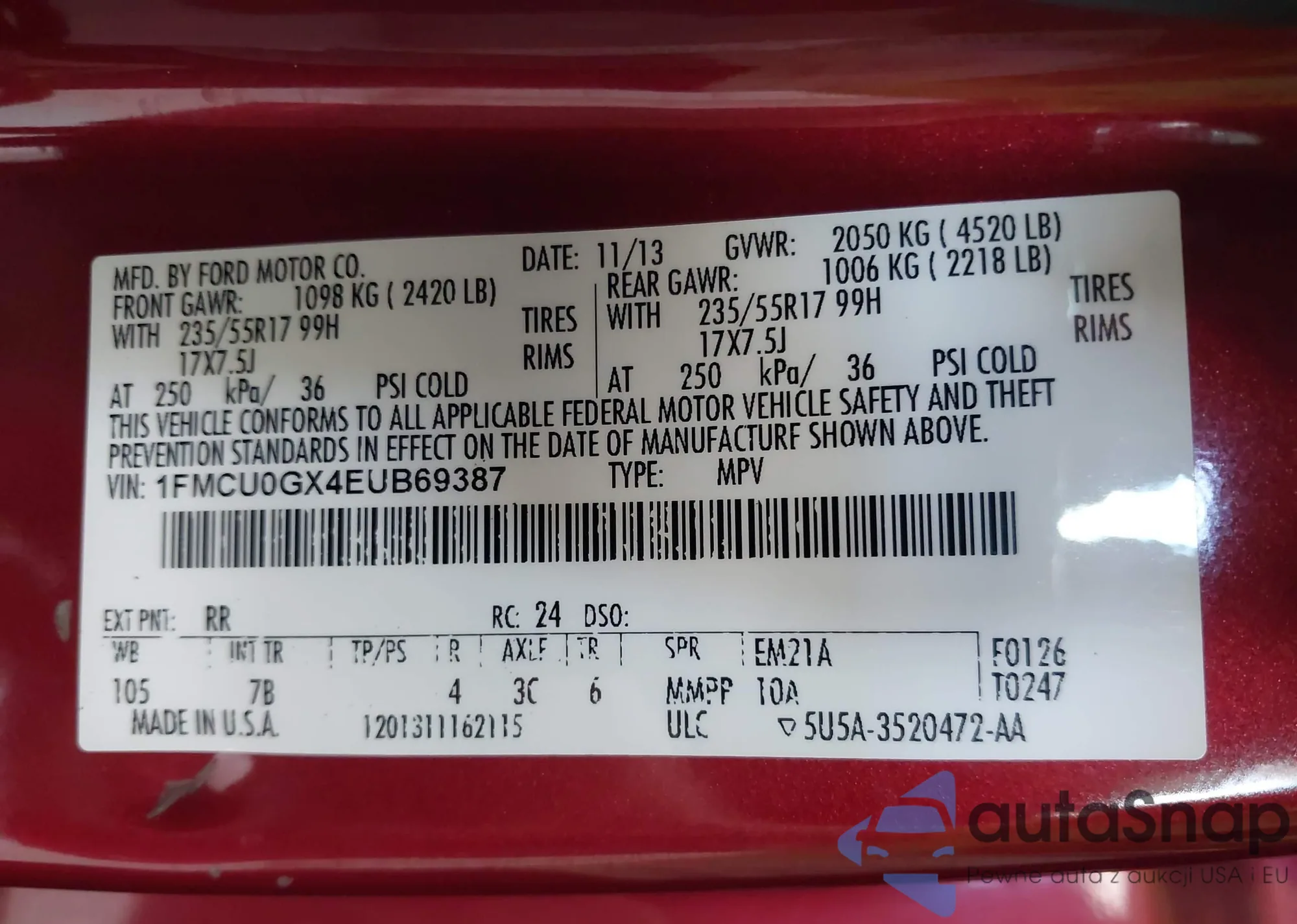 VIN: 1FMCU0GX4EUB69387
