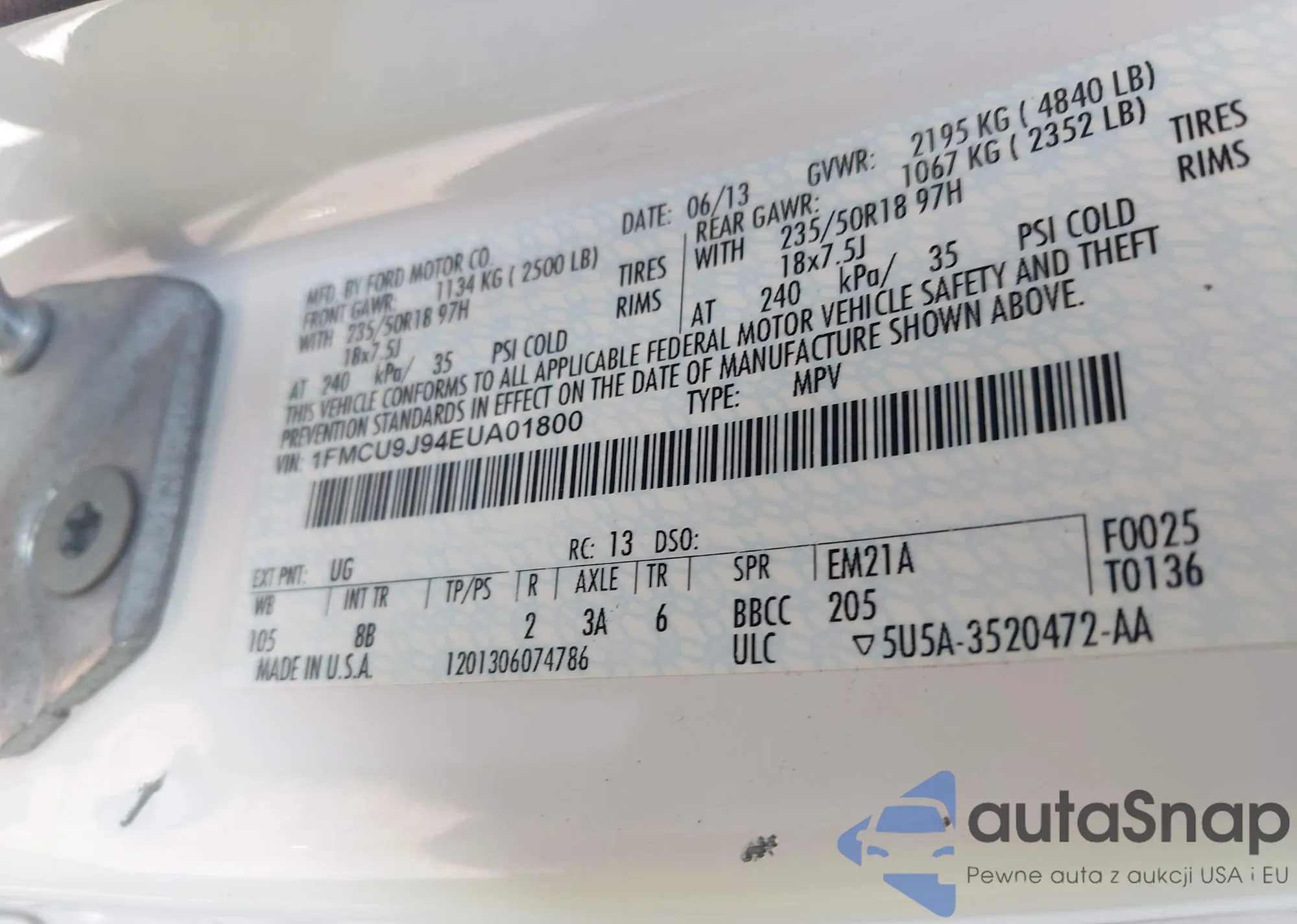VIN: 1FMCU9J94EUA01800