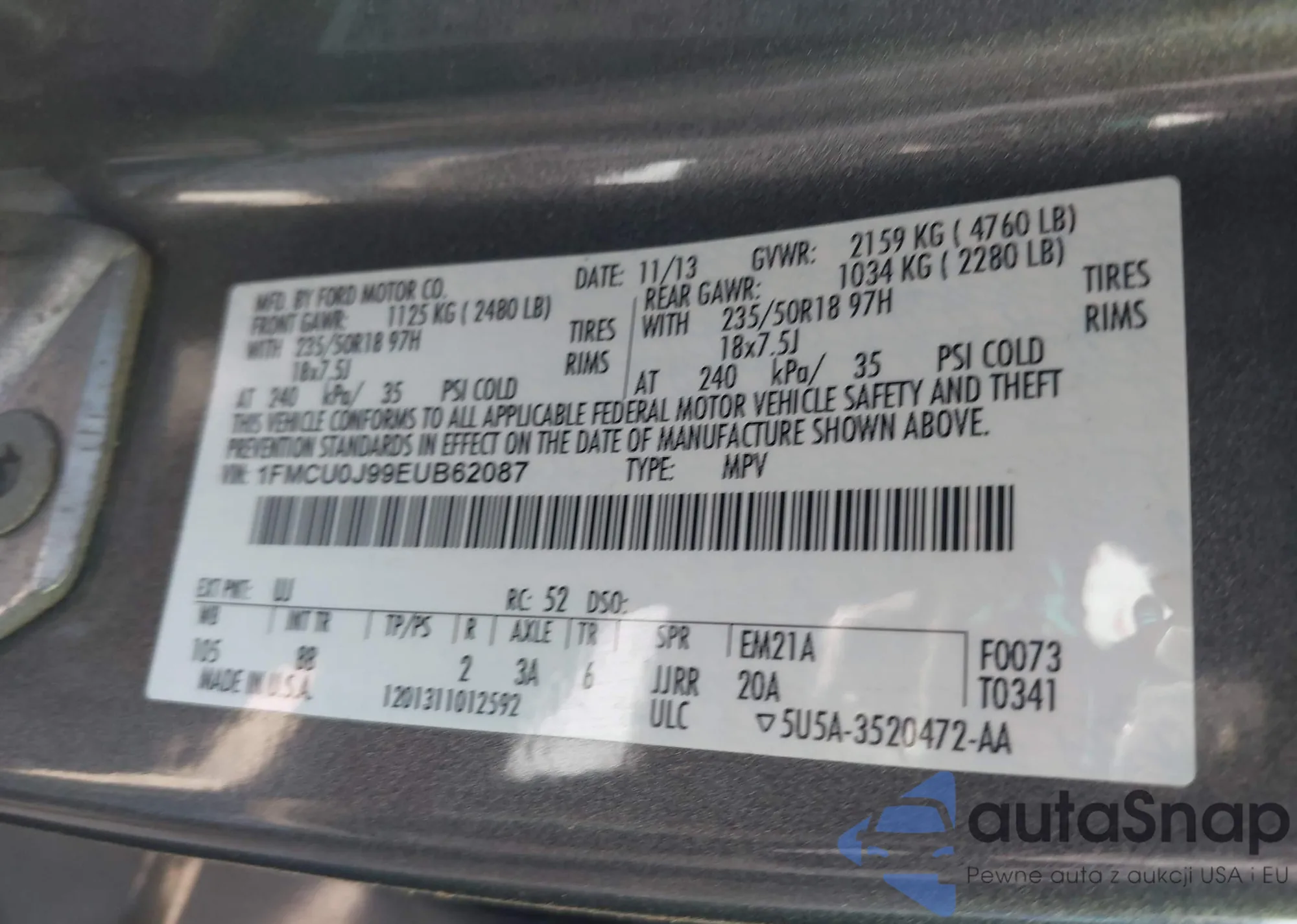 VIN: 1FMCU0J99EUB62087