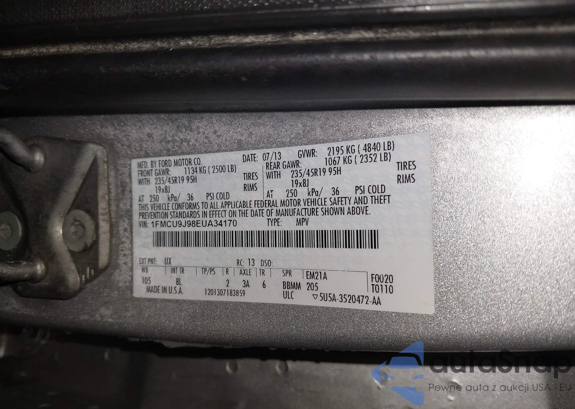 • VIN: 1FMCU9J98EUA34170
