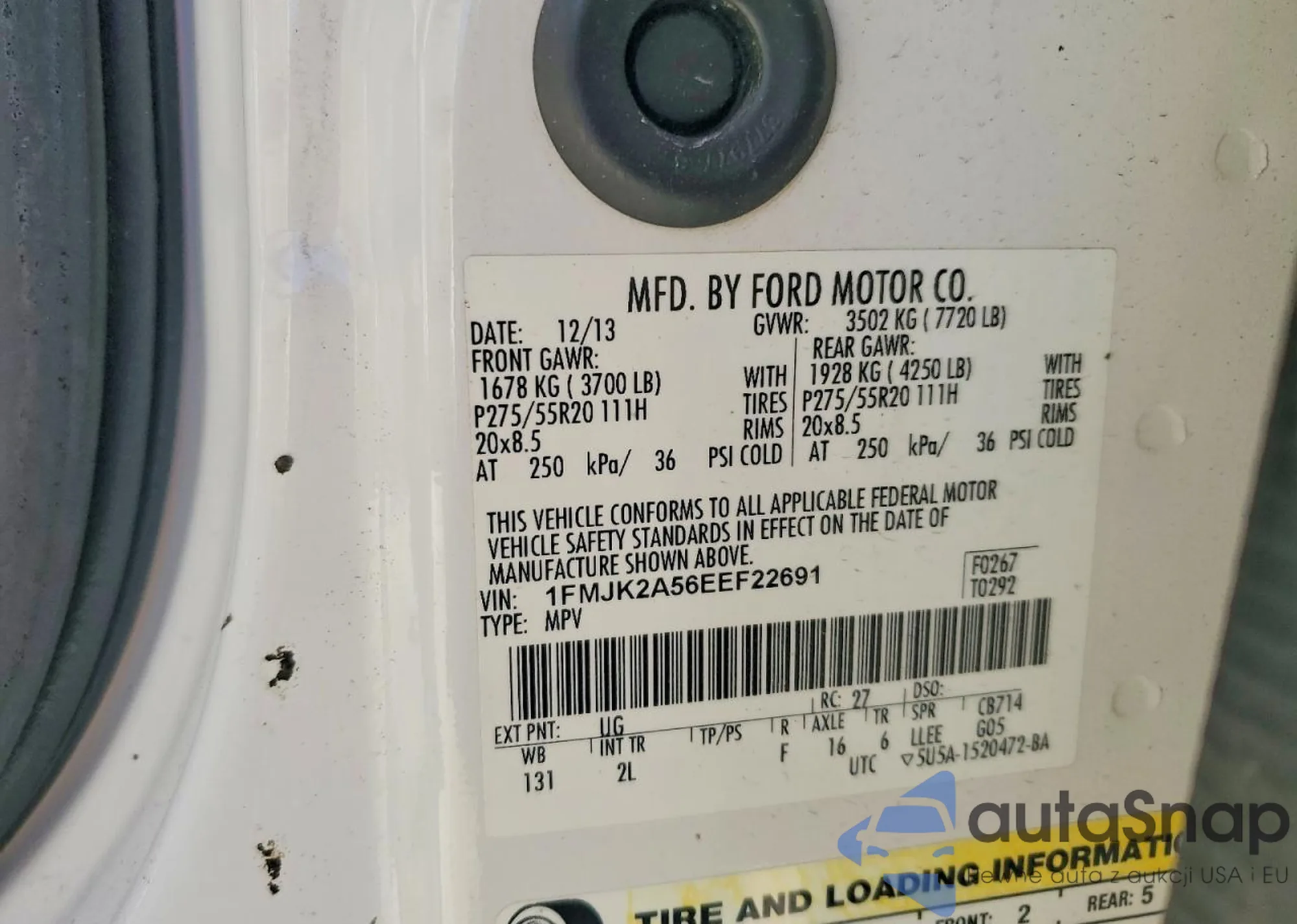 The car Ford Expedition 2014 (VIN 1FMJK2A56EEF22691) is sold by an unverified seller. We recommend checking the Carfax report and confirming registration possibilities before purchase.