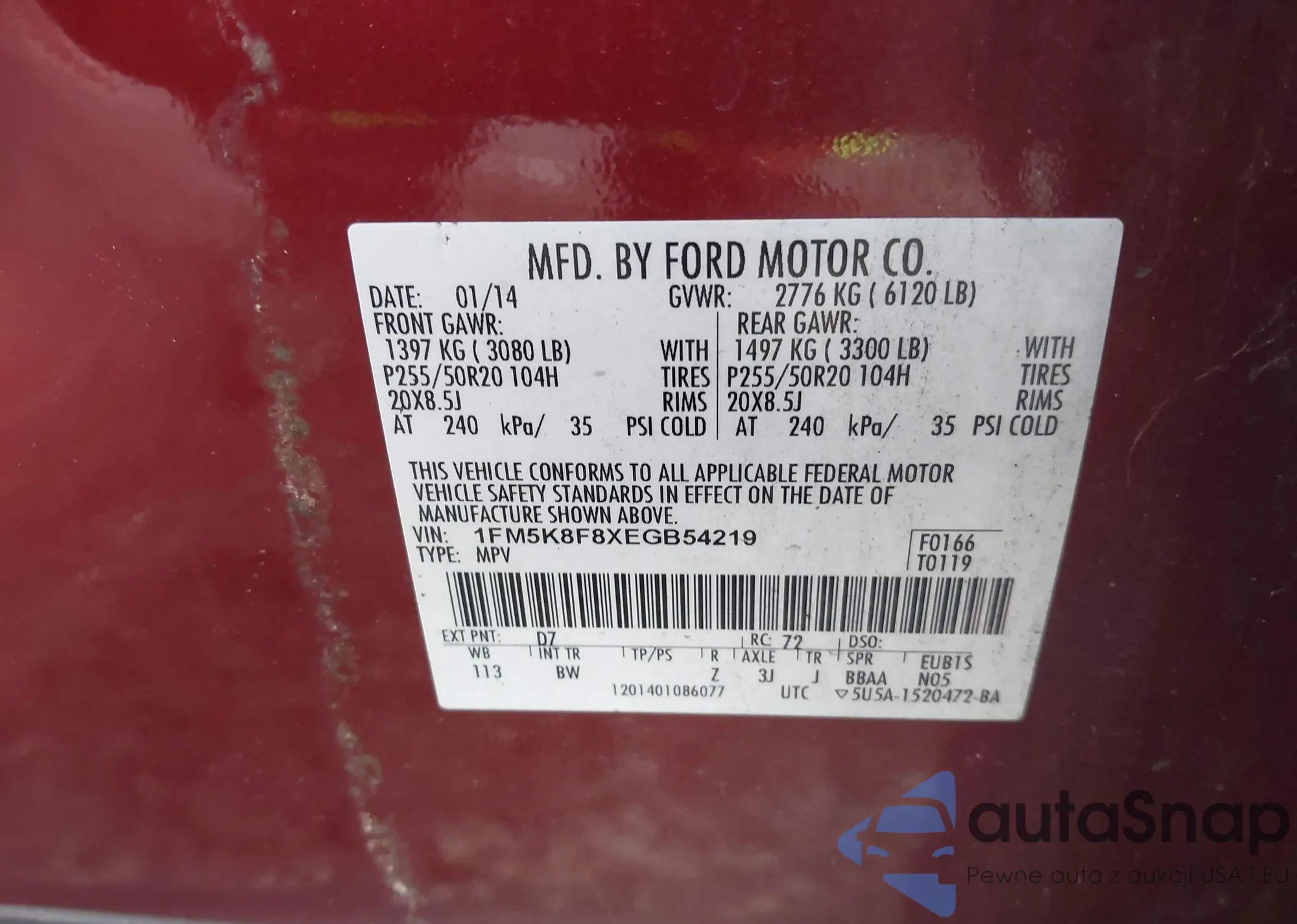 VIN: 1FM5K8F8XEGB54219