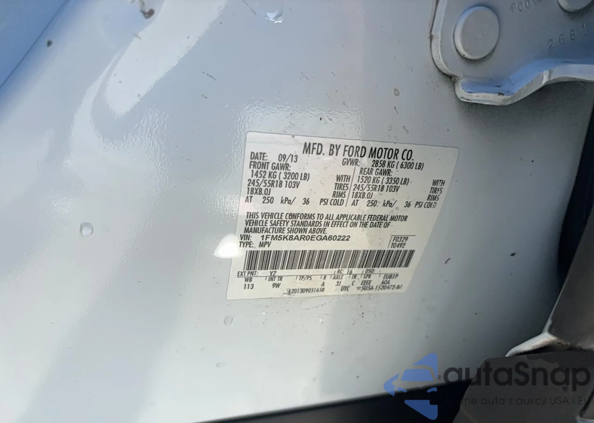 VIN: 1FM5K8AR0EGA60222