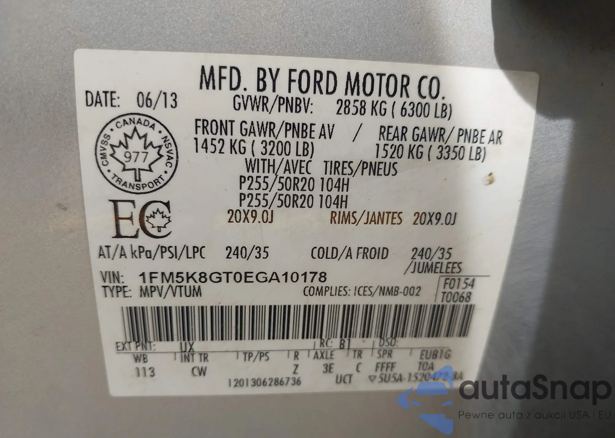 • VIN: 1FM5K8GT0EGA10178