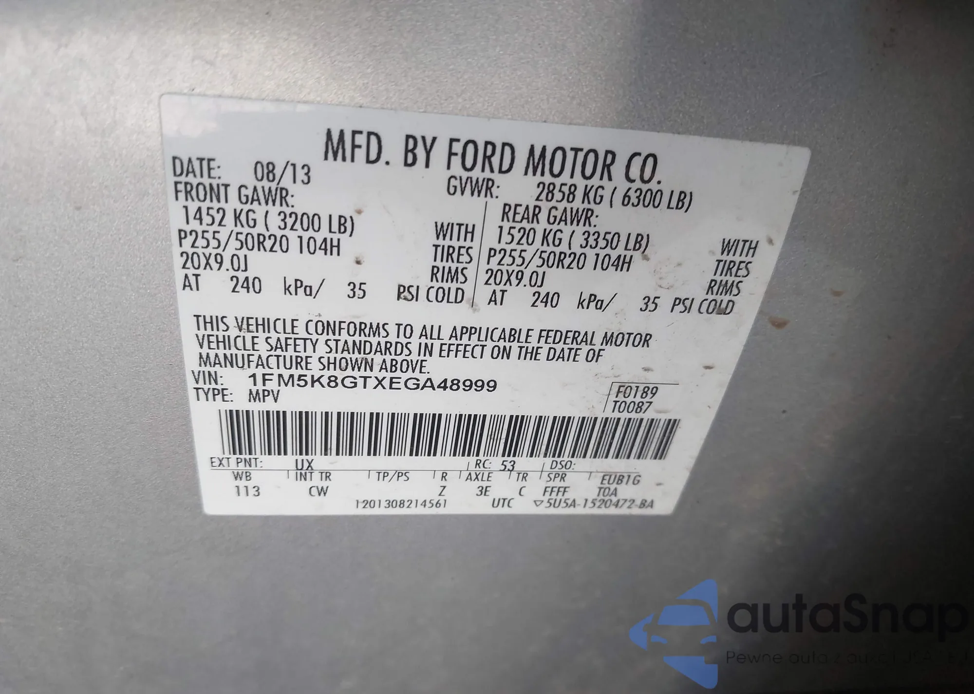 • VIN: 1FM5K8GTXEGA48999