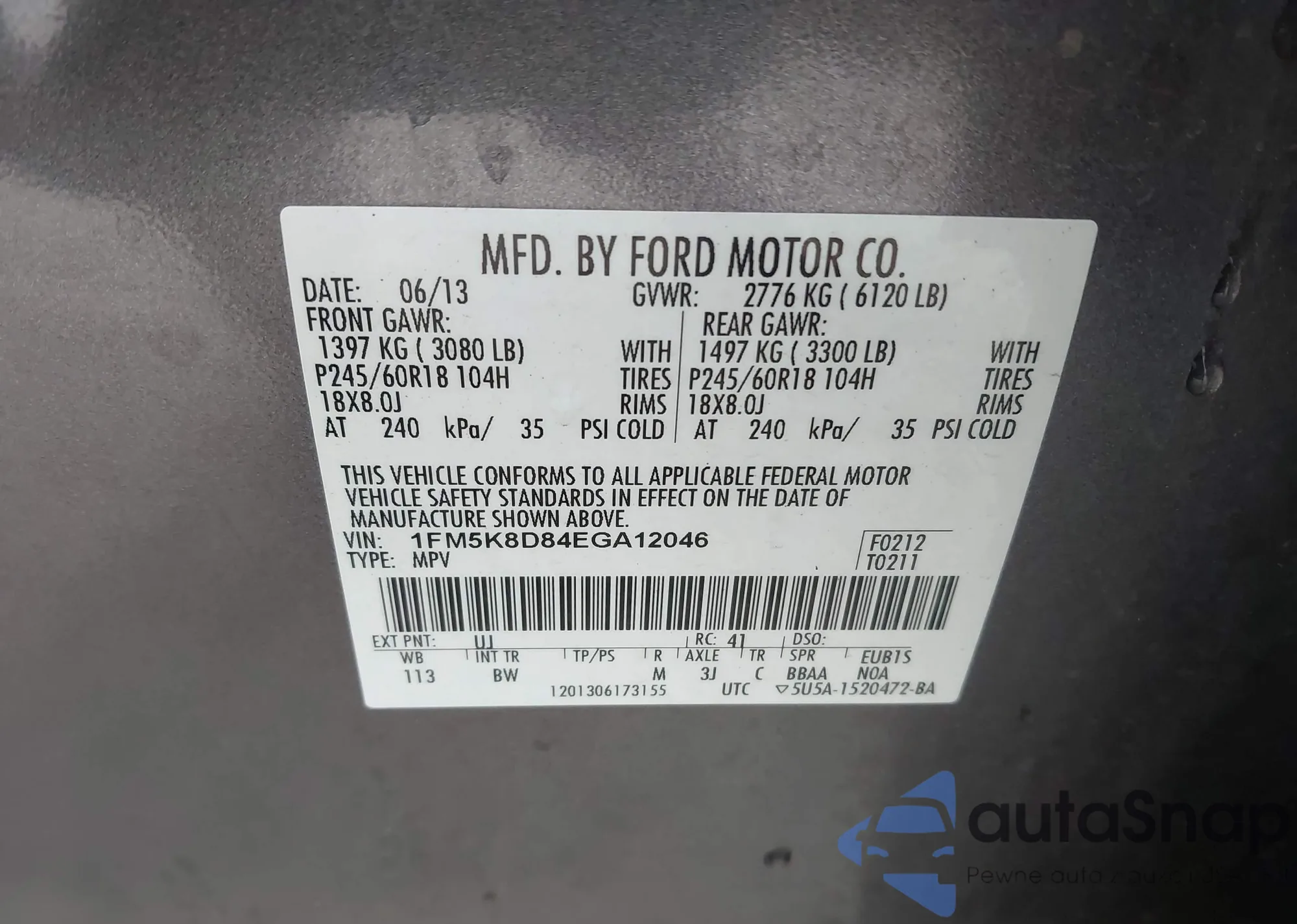 VIN: 1FM5K8D84EGA12046
