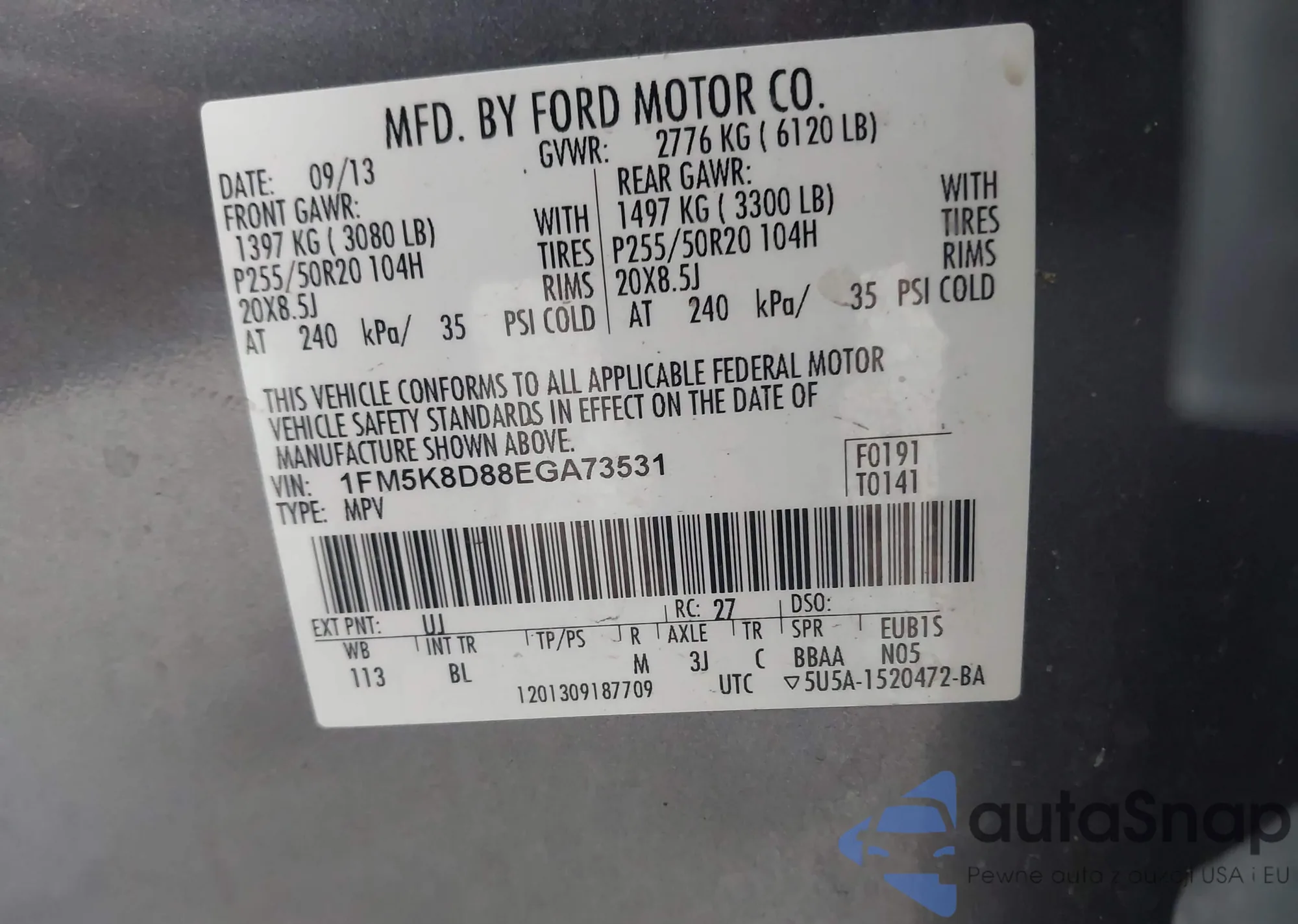 The car Ford Explorer 2014 (VIN 1FM5K8D88EGA73531) has not been auctioned before. The documents are clean, and the mileage matches or is below the market average. Sold by an insurance company – we recommend purchase. Delivery to the port will take approx. 6–8 weeks.