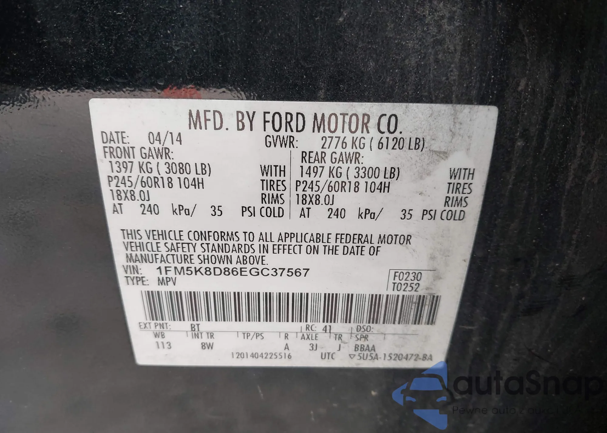 VIN: 1FM5K8D86EGC37567