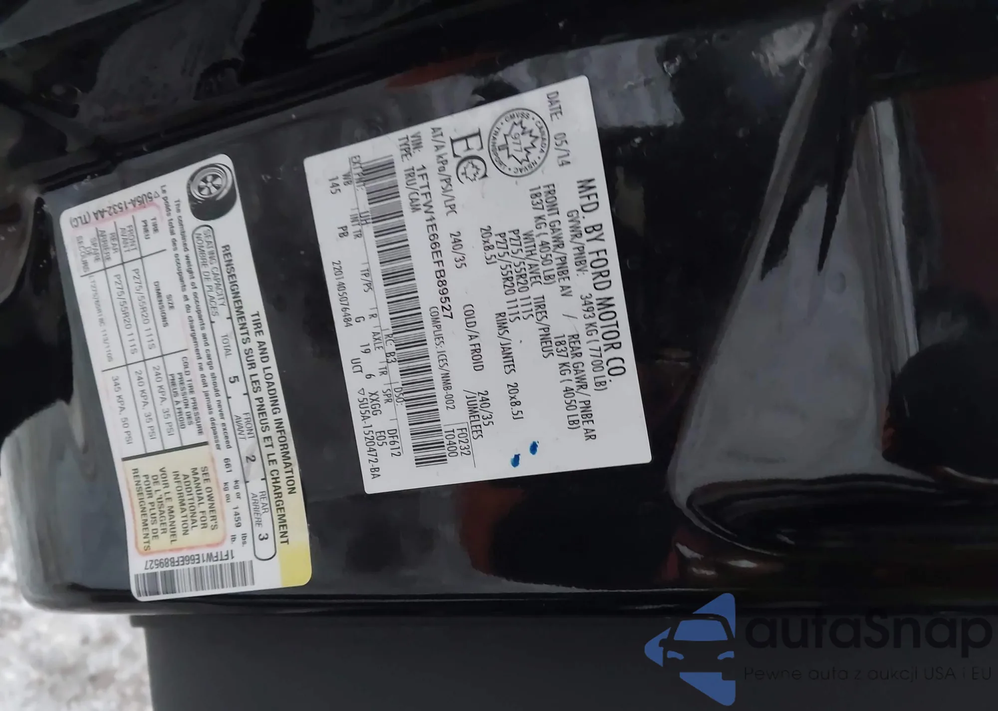 • VIN: 1FTFW1E66EFB89527