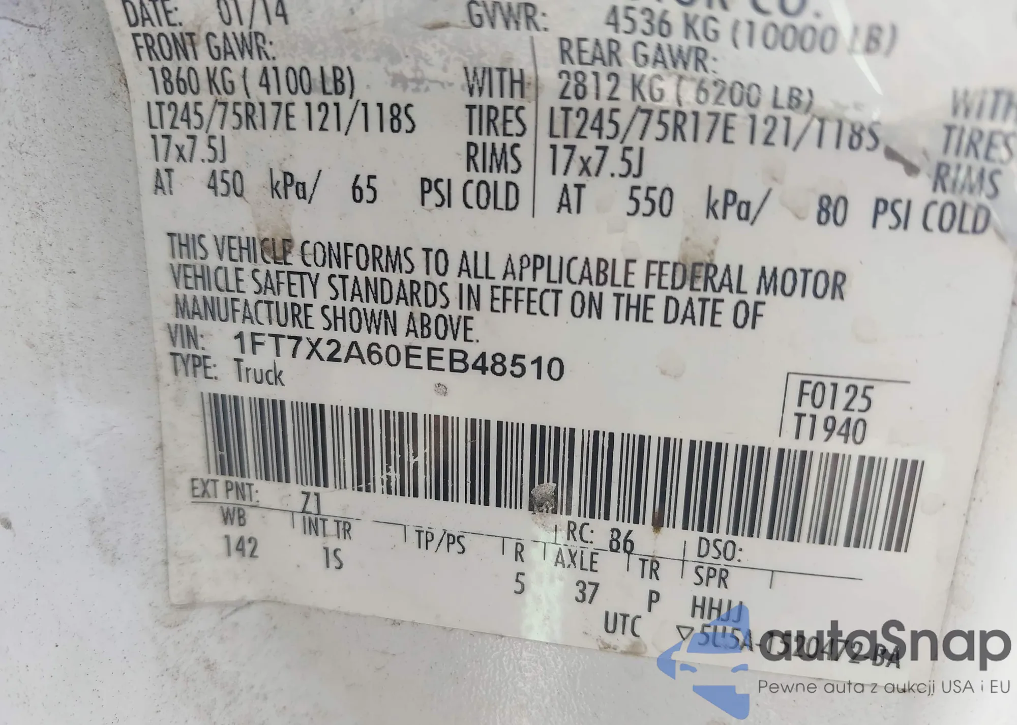 VIN: 1FT7X2A60EEB48510