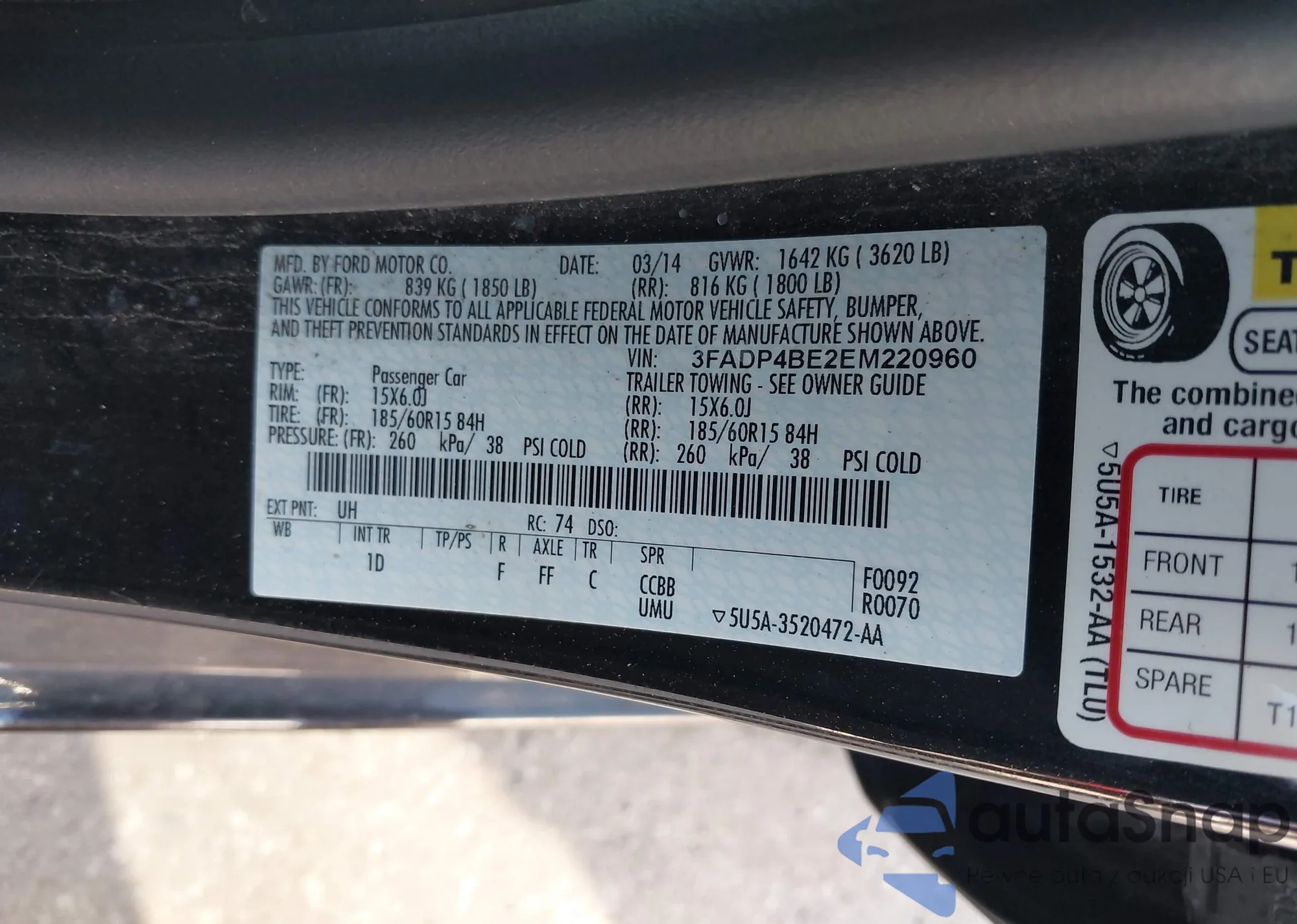 VIN: 3FADP4BE2EM220960