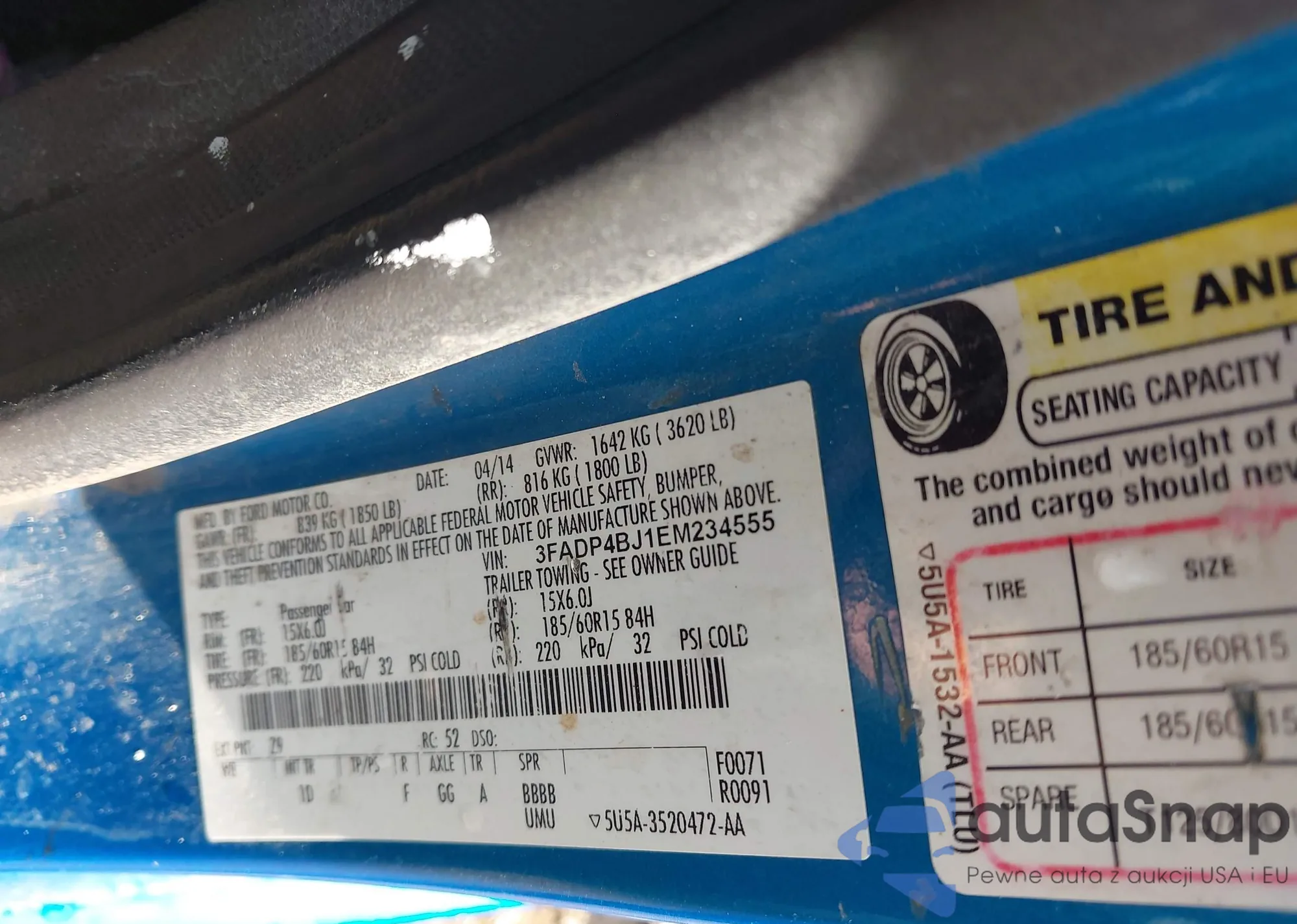 • VIN: 3FADP4BJ1EM234555