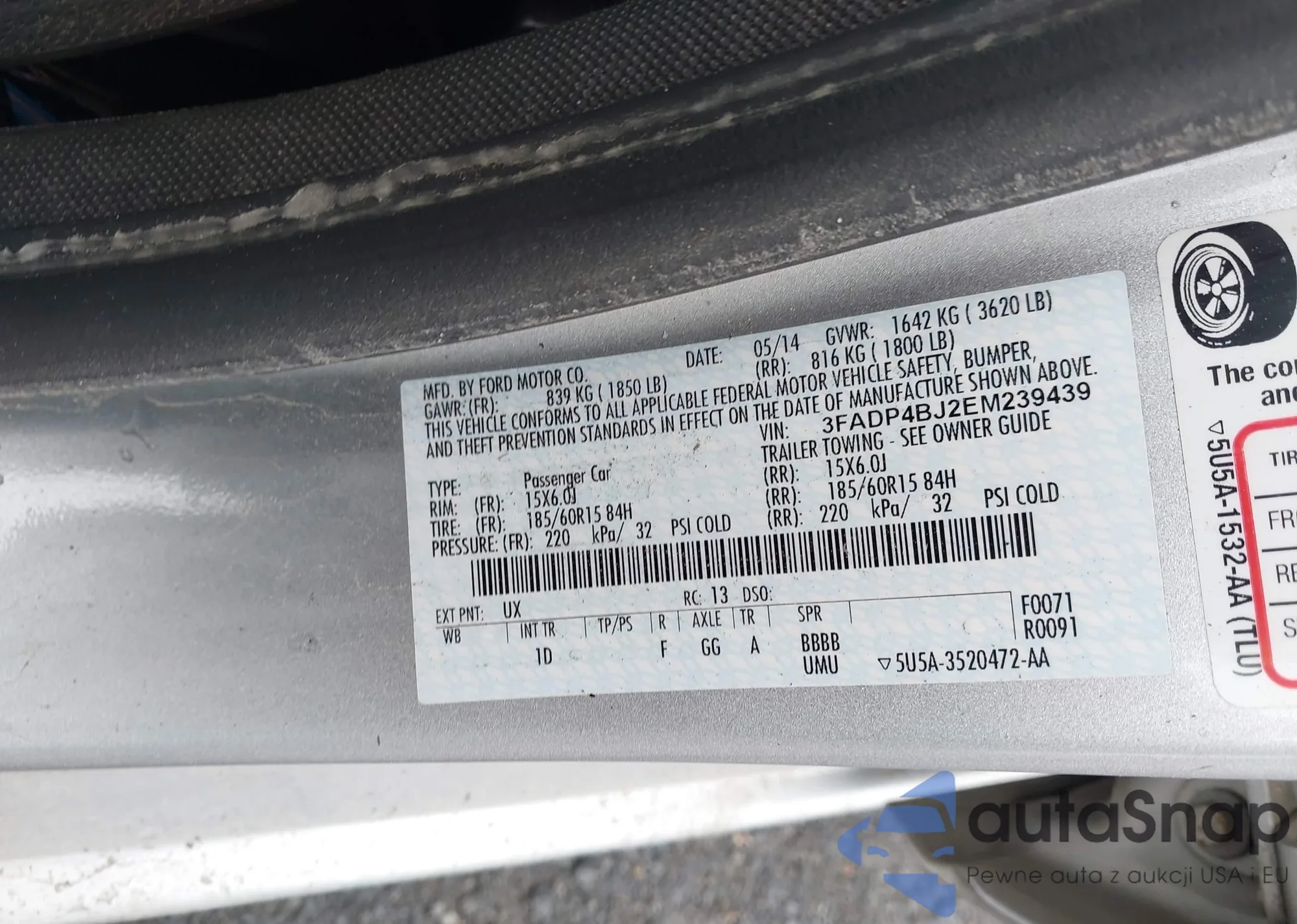 VIN: 3FADP4BJ2EM239439